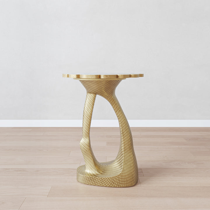 Indulge positive energy into your living space with the Agate End Table. It flaunts an assortment of Green color Natural Agate Stones kept in place by a Gold Paint finished top. The base consists of a Solid Iron structure cladded in Antique Brass finish that instantly draws attention, thanks to its hand-hammered texture. Add it in pairs to create a serene and peaceful interior setting.