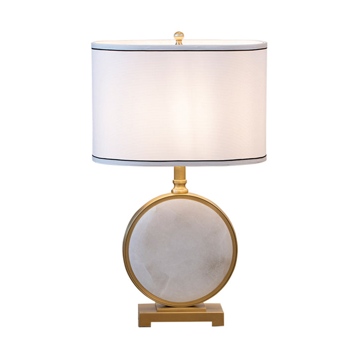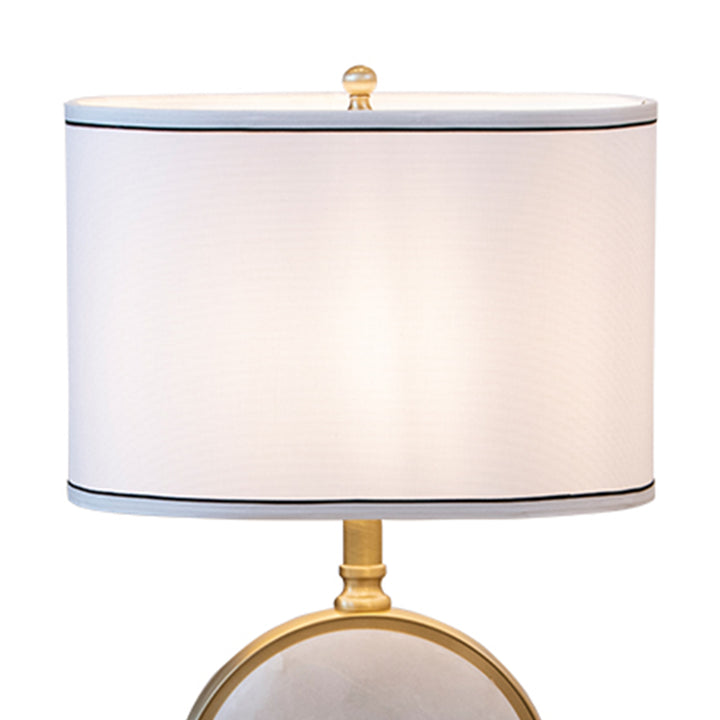 Perfection in every detail, the Alabaster Table Lamp displays a unique combination of materials. It rests on a round White Alabaster frame embellished by Antique Brass-finished steel accents. The oval-shaped shade dressed in Beige Linen fabric will produce a soothing glow in your bedroom or living room.