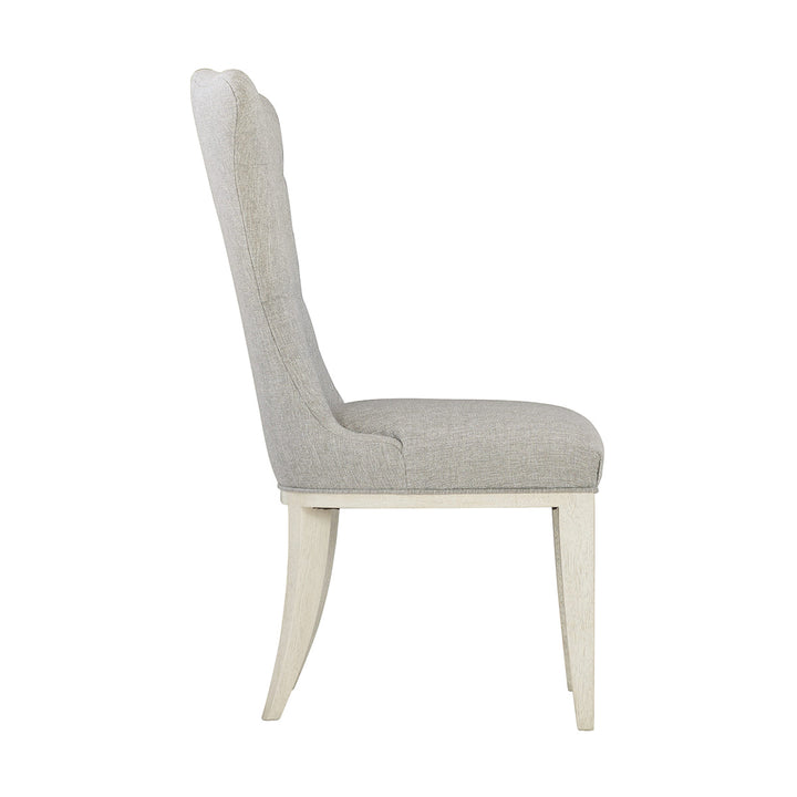 When choosing a sober and comforting dining chair, one can't miss the Allure Dining Chair. The highlights of Silver Luster on gleaming Manor White finish give a great touch to the chair. Moreover, the welted upholstered seat top, outback, and inback provide a perfect outlook to the chair.