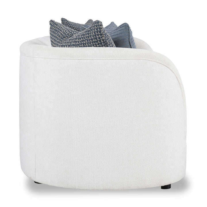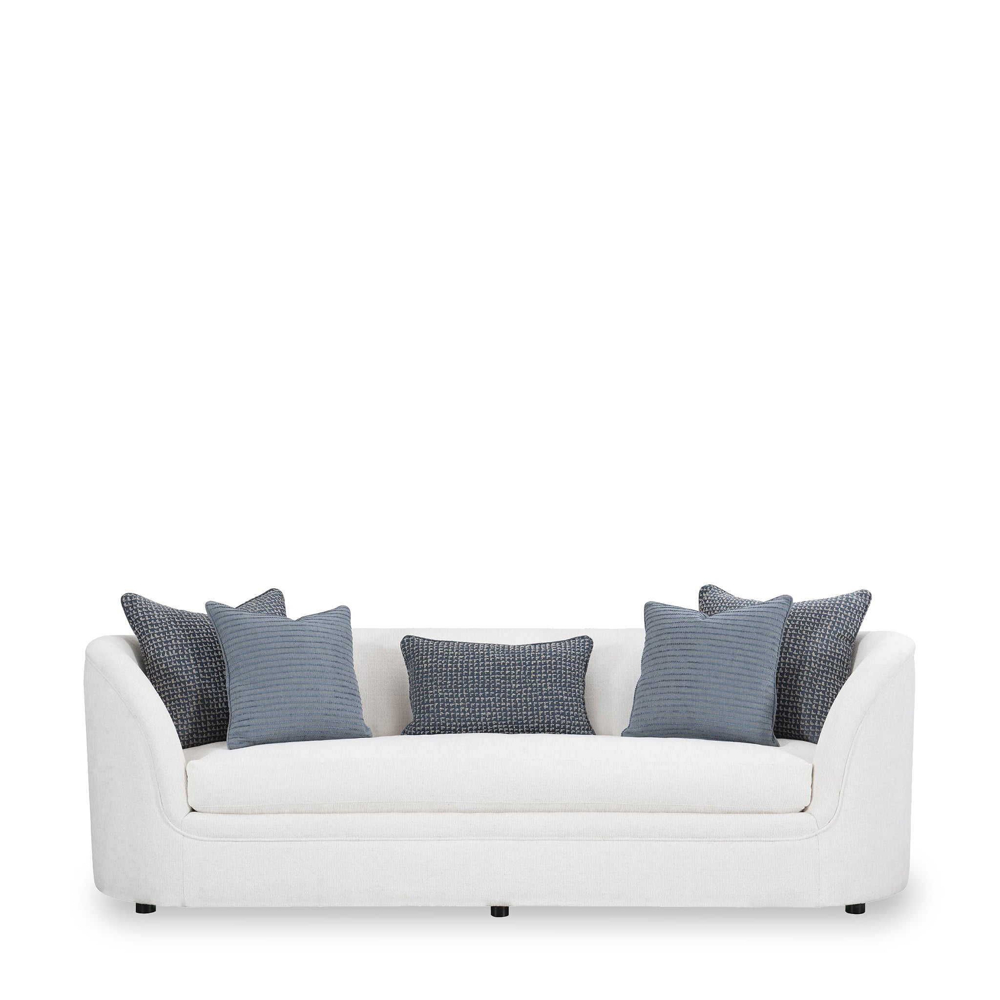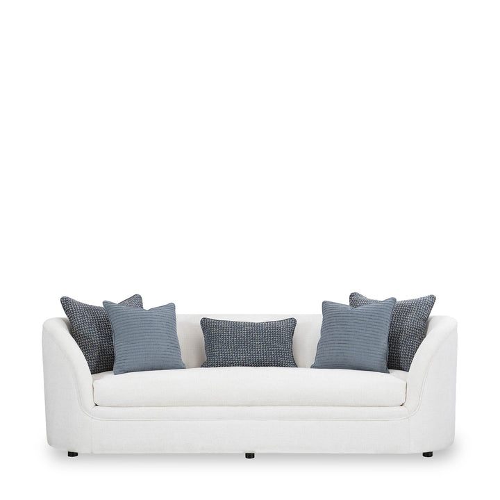Flaunting a gently curved silhouette and soft upholstery, the Amara Curved Sofa is an excellent choice for plush living rooms. Its loose seat cushion and tight back will help you relax, while the additional throw pillows complete the look. Add it to create an inviting setting where guests feel welcomed and relaxed.