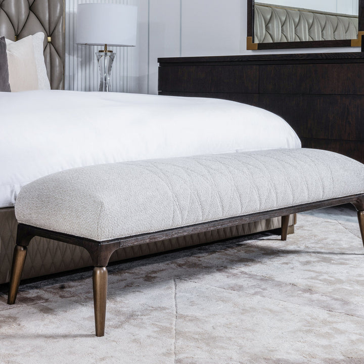 Amour Table III is a luxury piece of furniture designed to create a statement around the space. It is designed with premium decorative accents such as quality fabric upholstery, intricate stitching patterns, and toned legs. This piece can be complimented in various settings, from a bedroom to a living room or entryway.