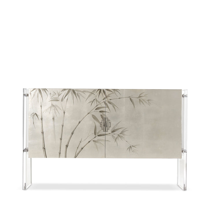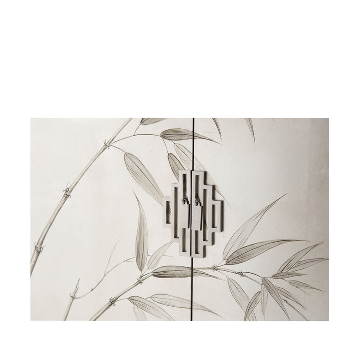 - Hand Silver-leafed Doors with Grisaille Painted Bamboo.