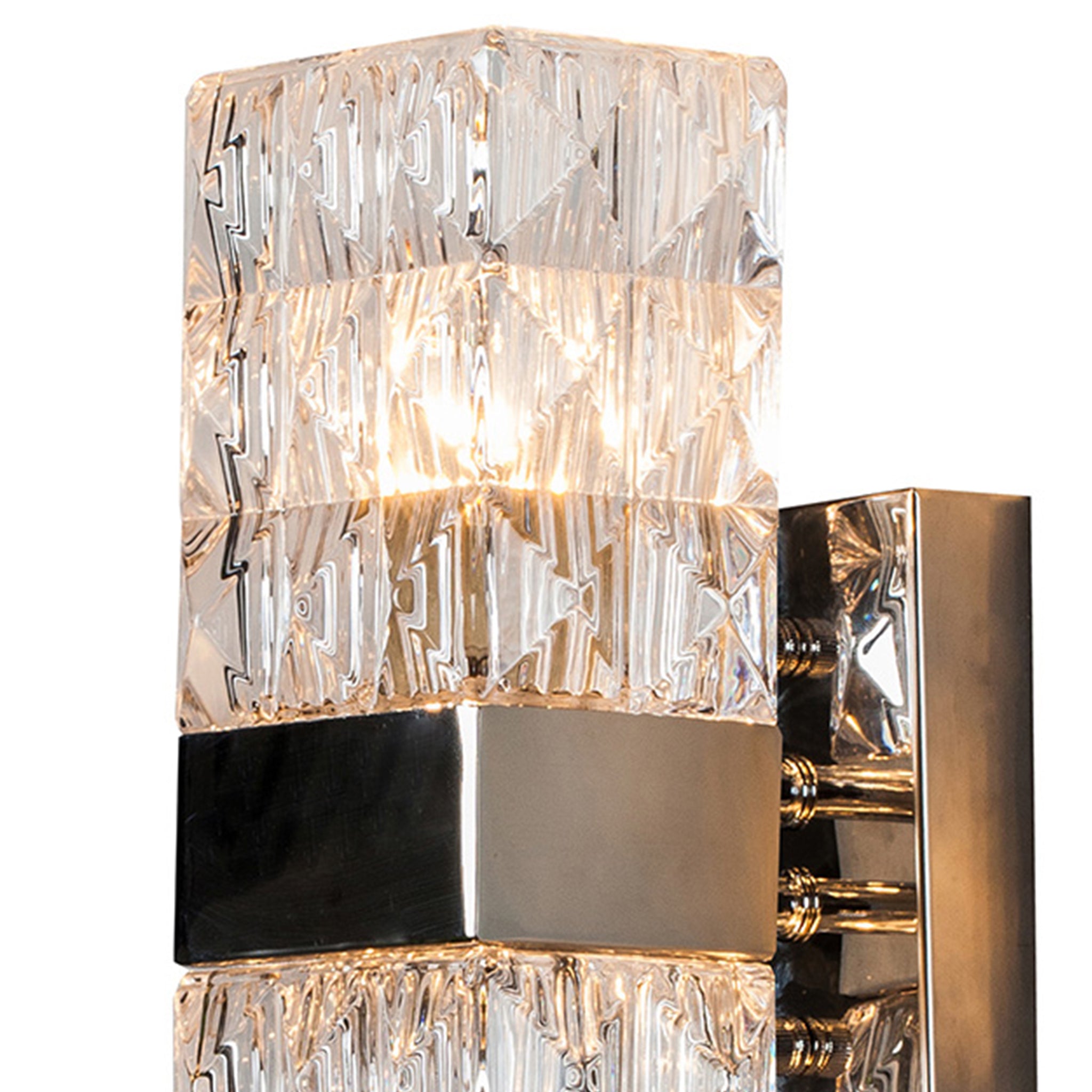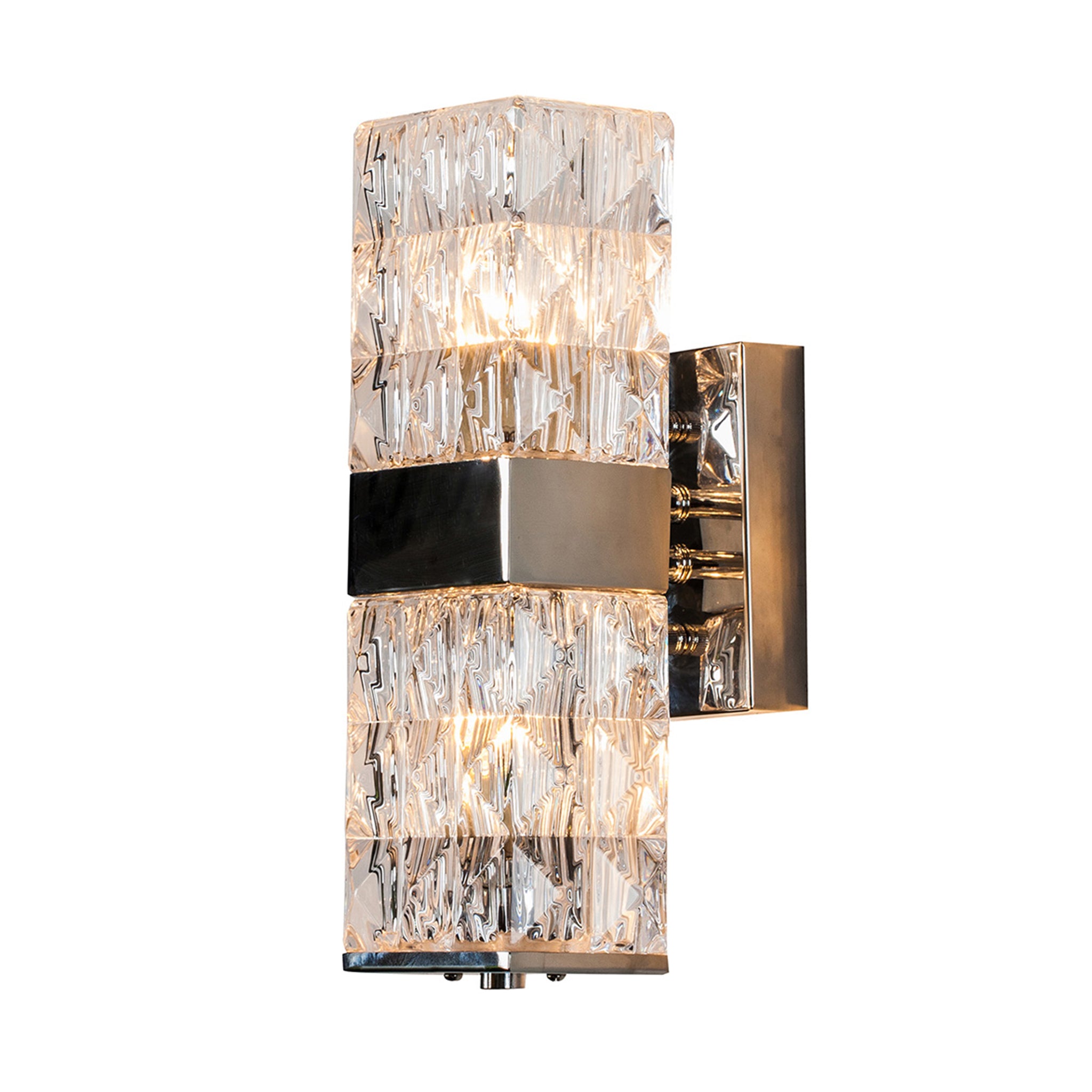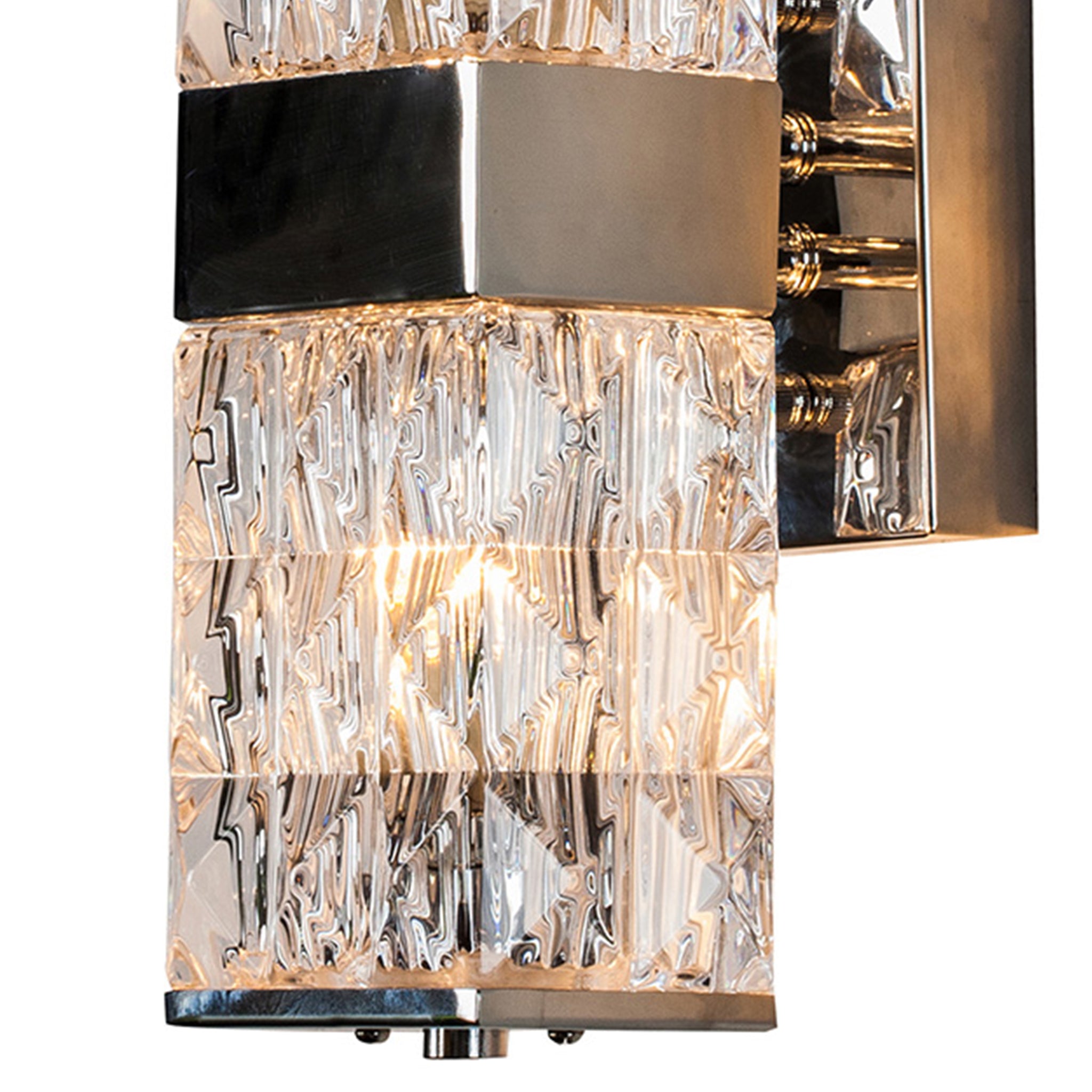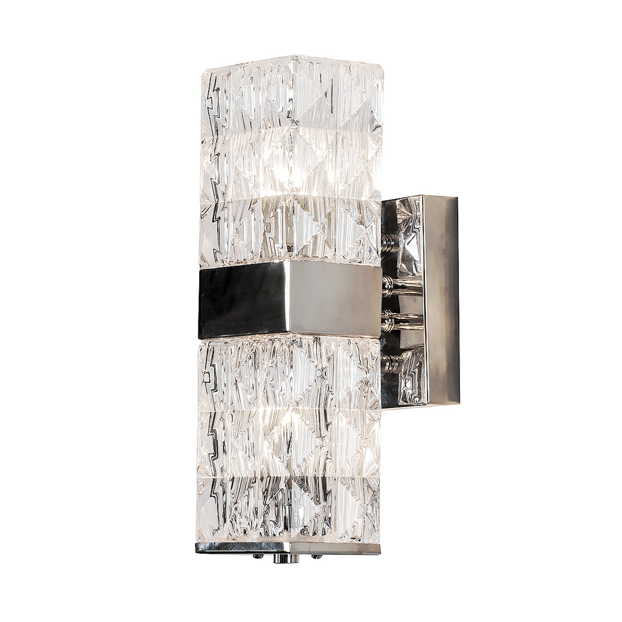 This state-of-the-art sconce will bring cozy lighting into your space with the crystal clear glass shade that flaunts a seamless prism pattern. Chrome-finished metal frame adds an air of sophistication to the arrangement. Suitable for bedrooms, bathrooms, or entryways to complete your modern setting.