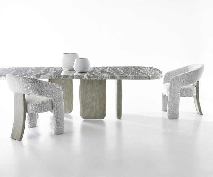An open back and elemental materials offer an organic and modern style for this chair.