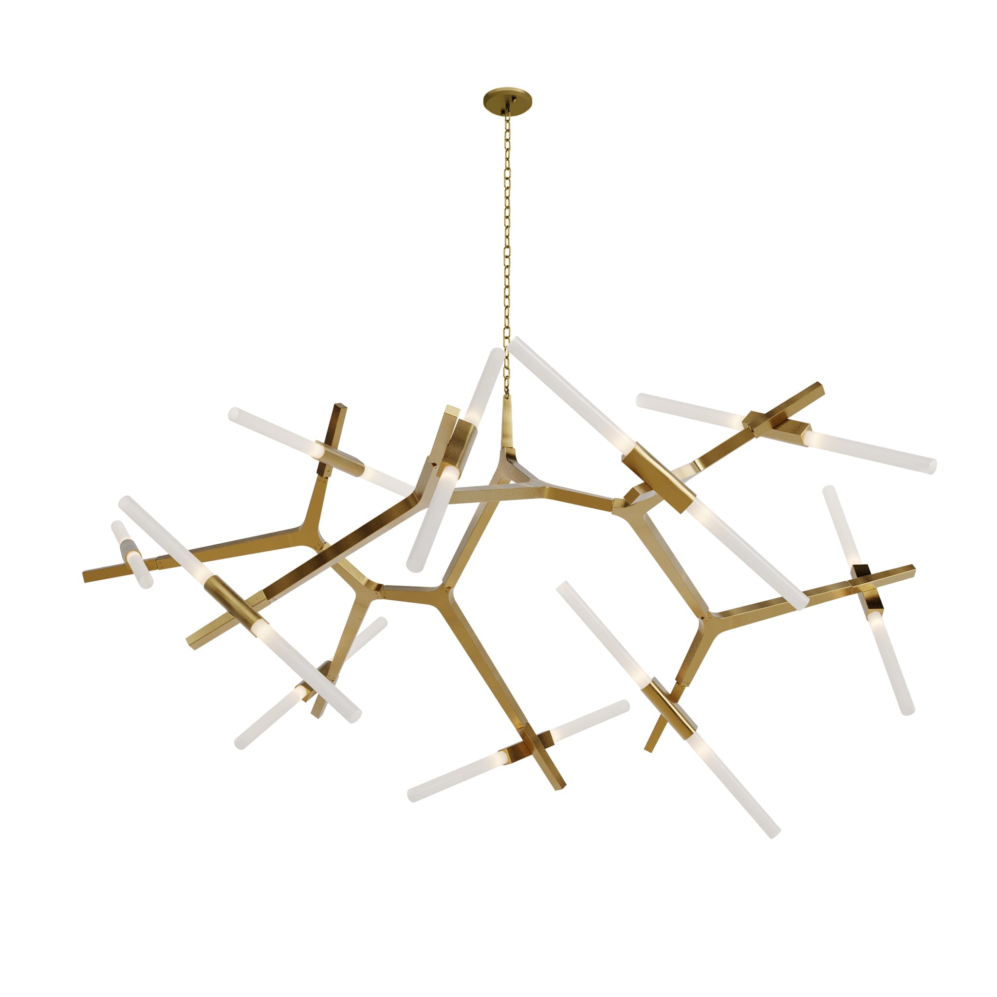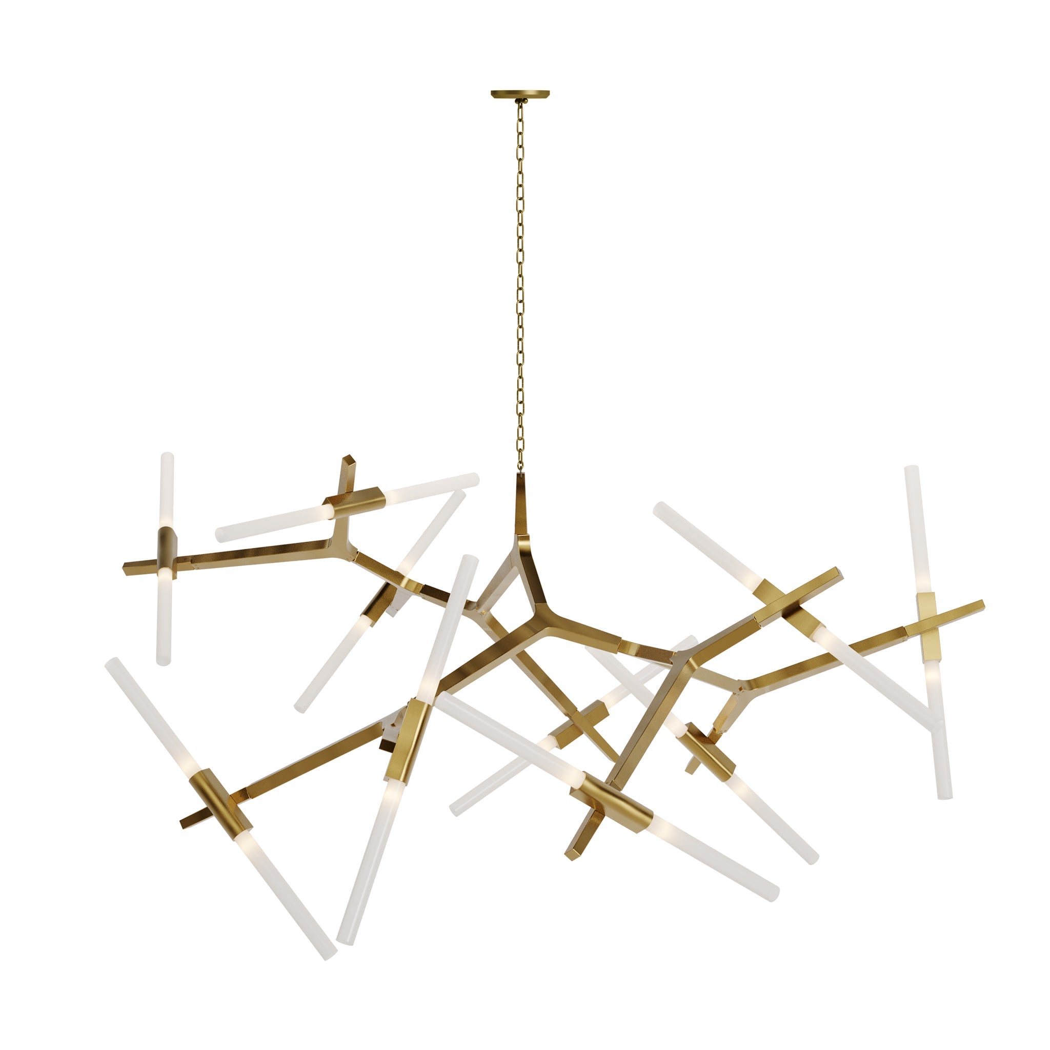 The Archer Chandelier is a sculptural piece of lighting ideal for subtle, minimally-designed dining spaces or study rooms. It's an aluminum-acrylic composition finished in Brass.