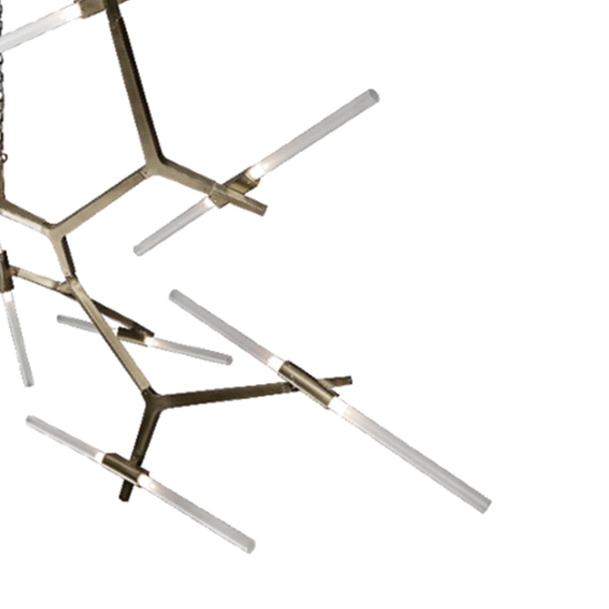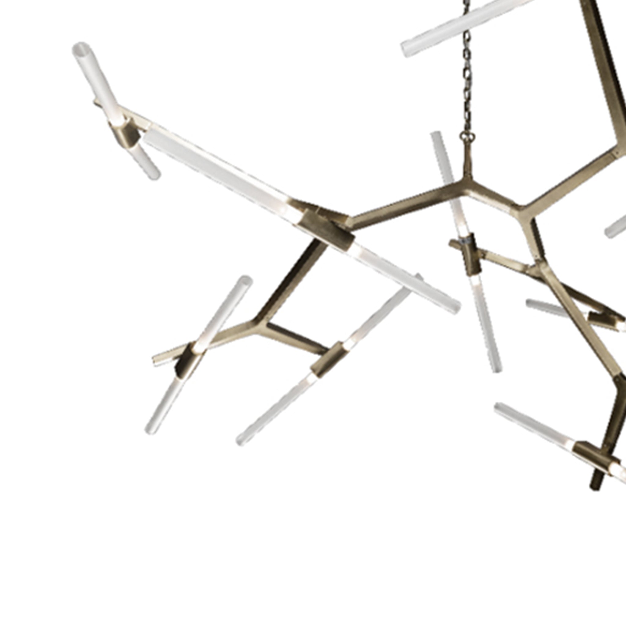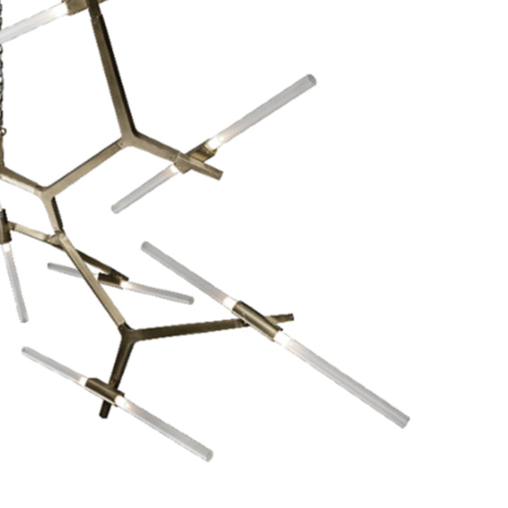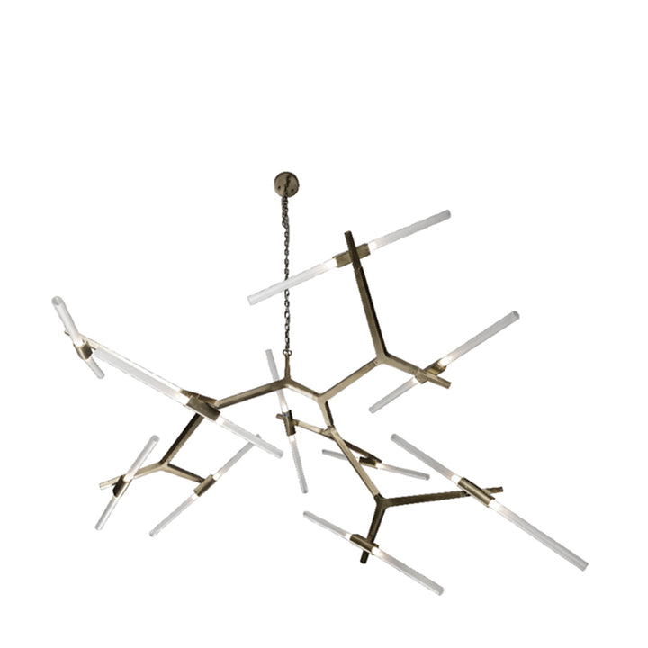 The Archer Chandelier is a sculptural piece of lighting ideal for subtle, minimally-designed dining spaces or study rooms. It's an aluminum-acrylic composition finished in Nickel.