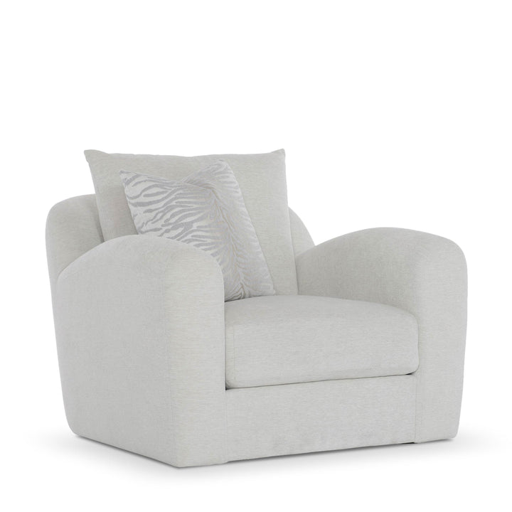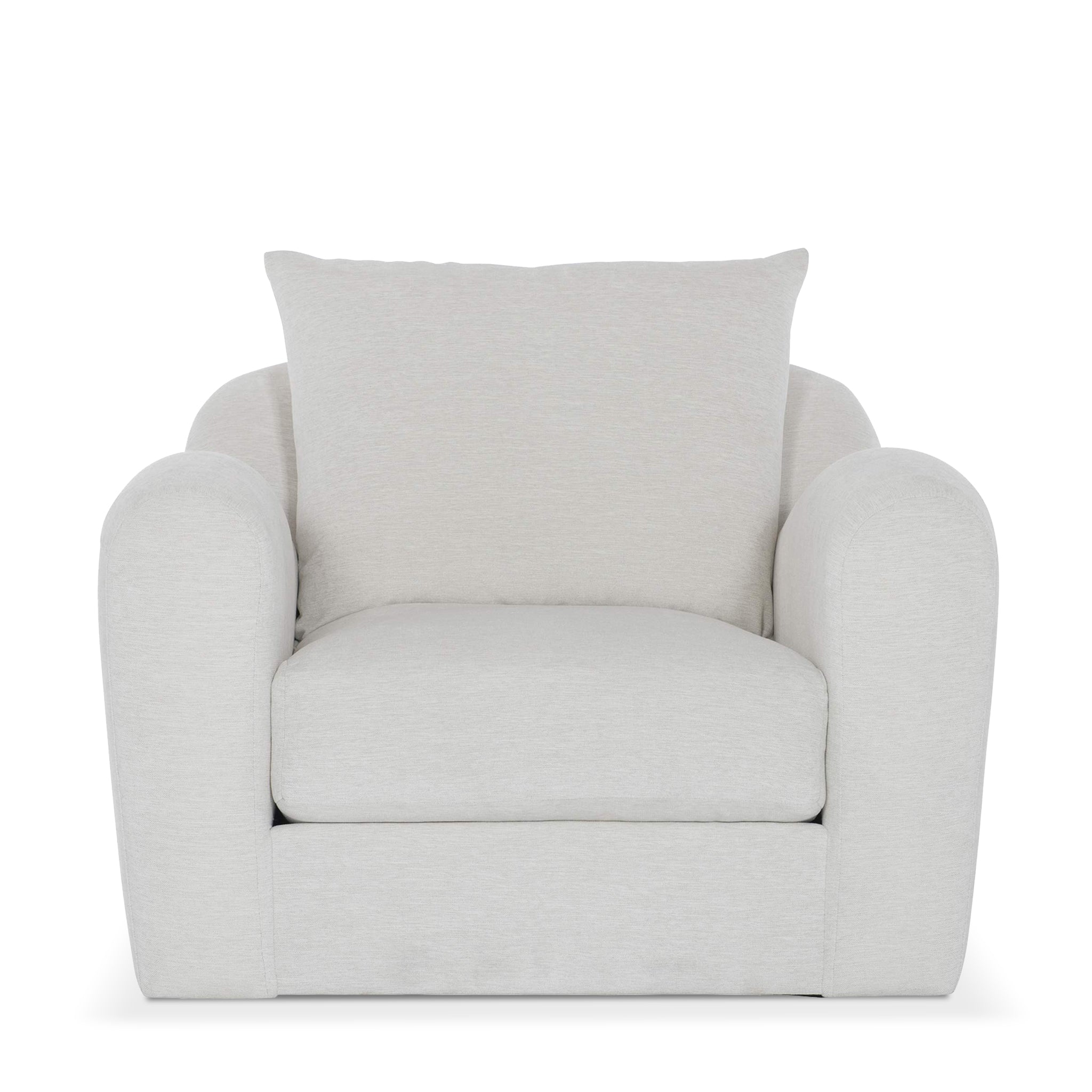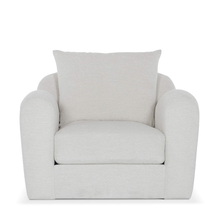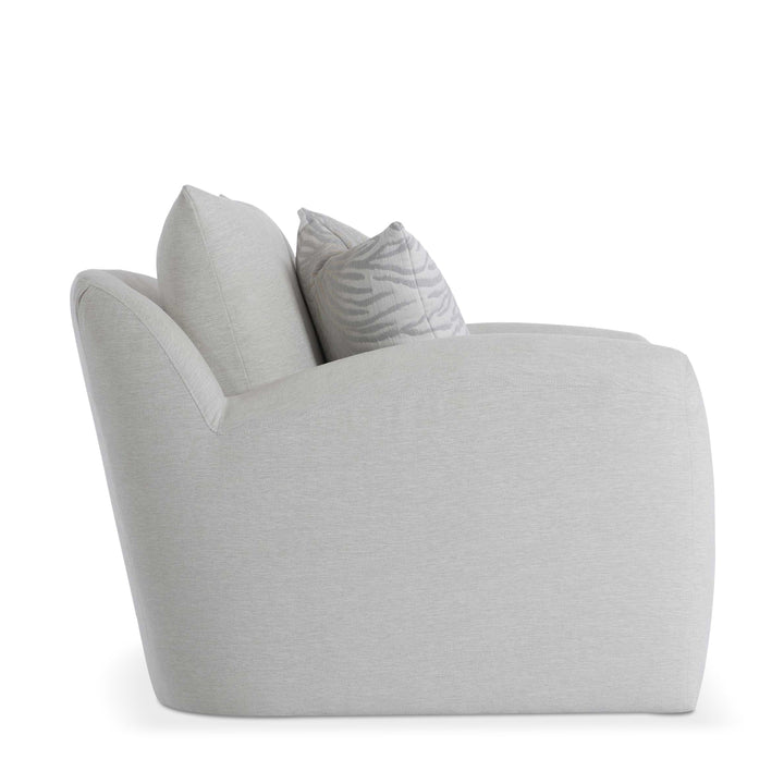 An upholstered swivel chair that will add a fun element to the interiors while keeping the decor subtle and sophisticated. It has a loose seat cushion and back pillow, ensuring your comfort, while an additional throw pillow accentuates the look. Use the chair in pairs to create a cozy spot for making the most of your leisure time.
