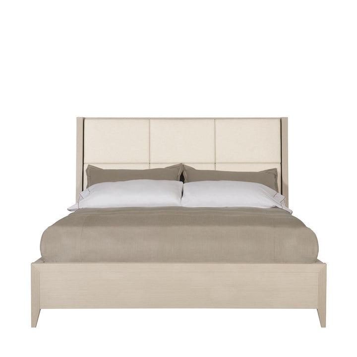- Wood-framed, winged headboard with six inset upholstered panels - no welt