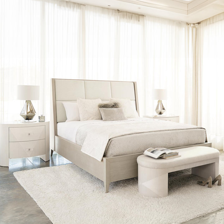 This masterpiece combines luxury and functionality. Crafted with precision, it features engineered faux anigre veneers that radiate elegance. The wood-framed, winged headboard boasts six inset upholstered panels for a seamless look, while the wood footboard and side rails add structural finesse. The three-slat support system and adjustable center supports offer unmatched strength.
