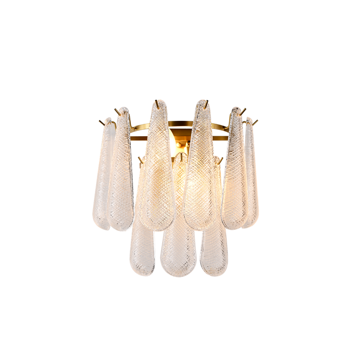This wall lamp pairs textured clear glass with an antique brass finish for a stylish look. Match it with the beaumont chandelier to create a balanced and elegant lighting setup.