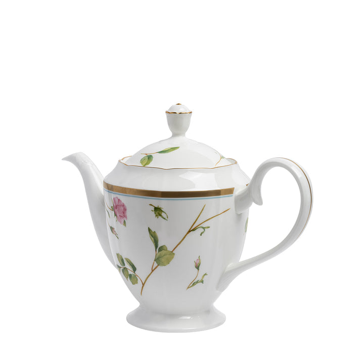 Serve refreshing tea/coffee to your special guests in this alluring Blooming Rosy Lane Tea/Coffee Pot. It is fitted with a stylish handle on one side and a spout on the other. Golden accents beautifully complement the formations of rose buds and leaves.
