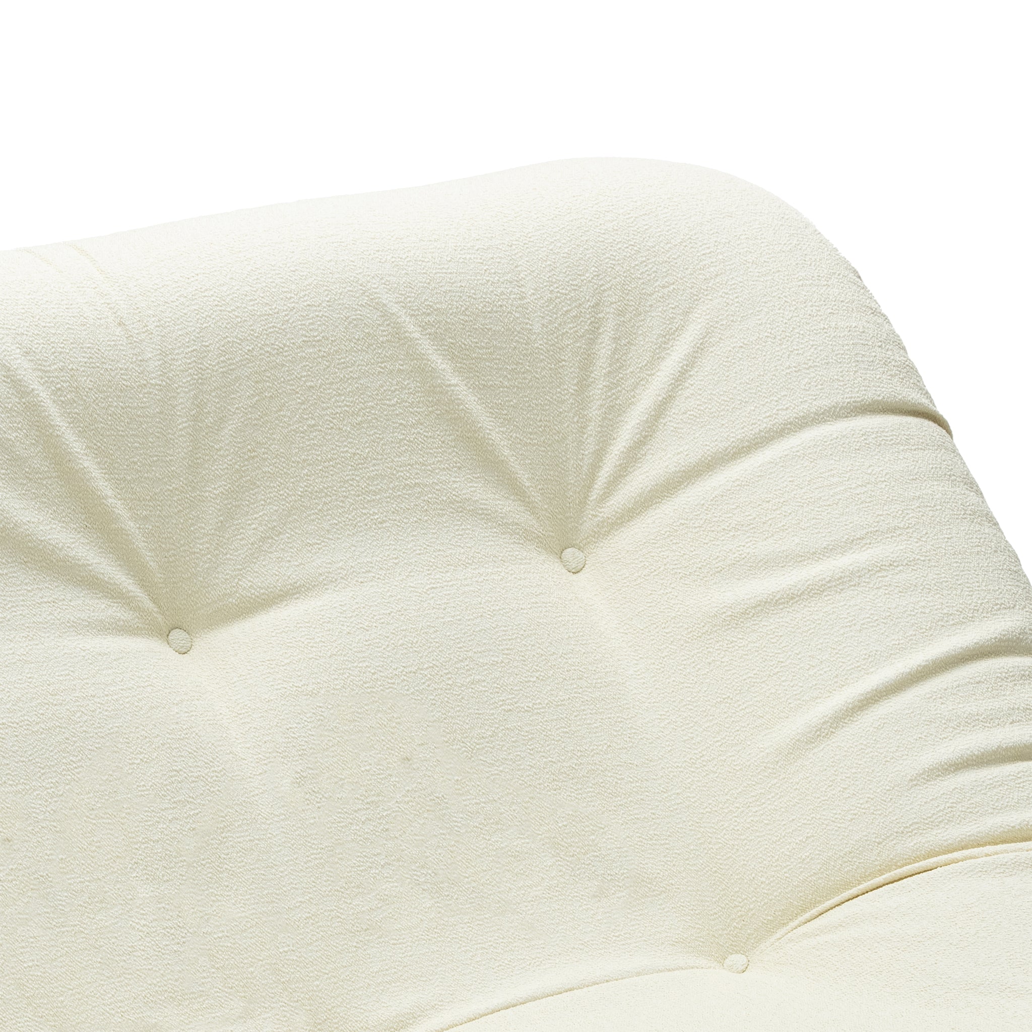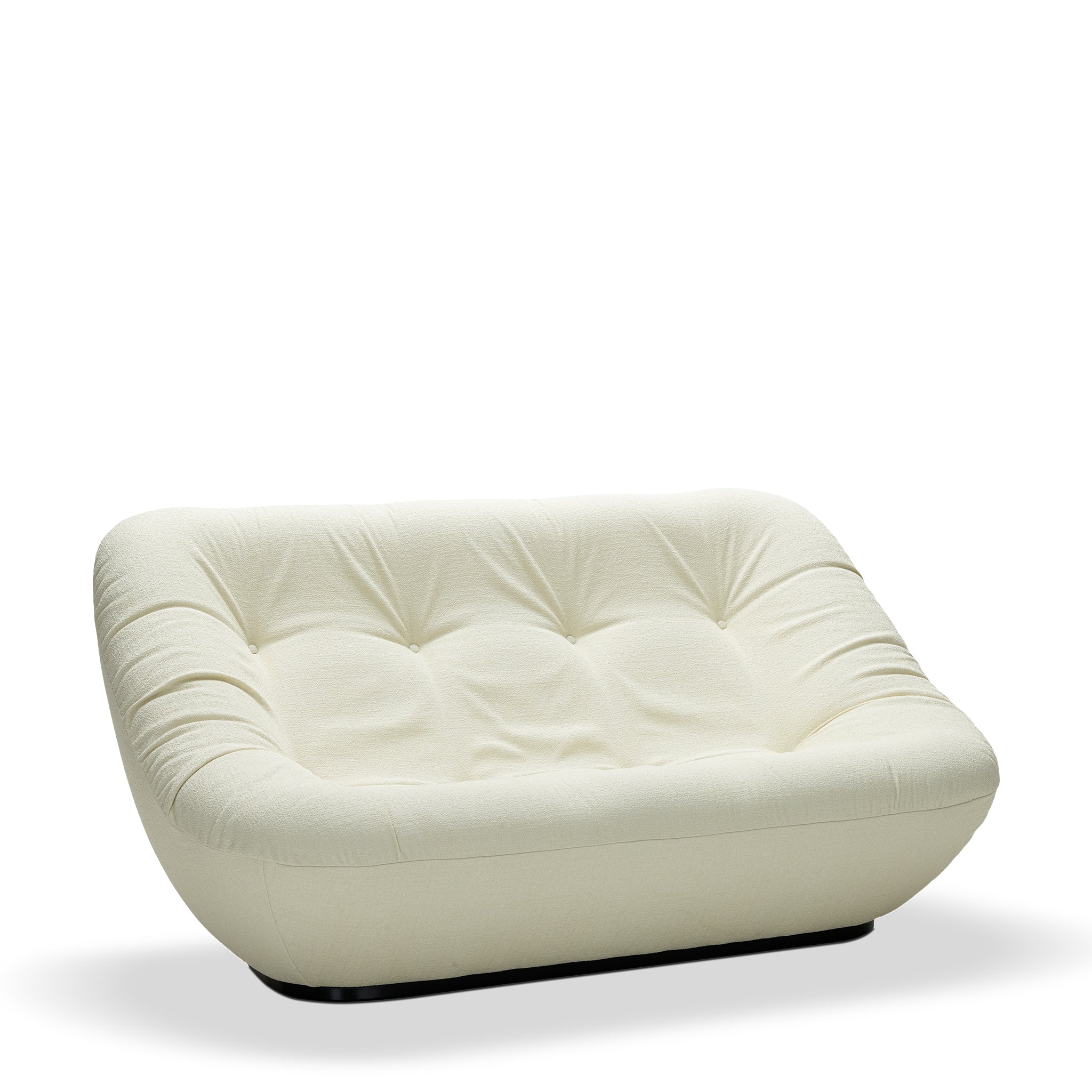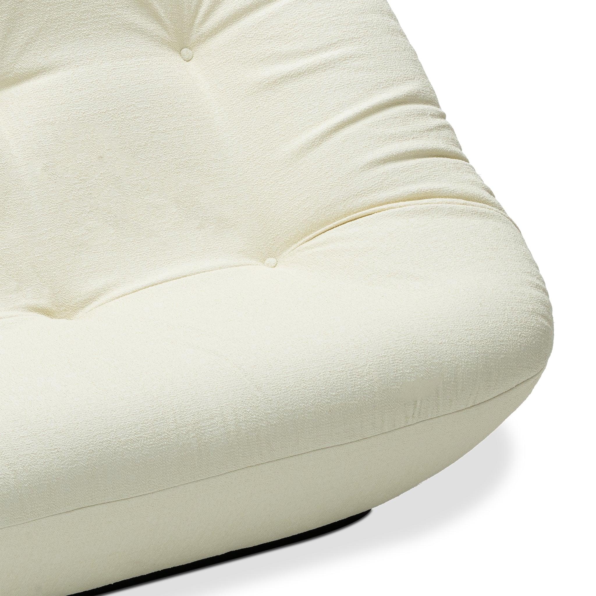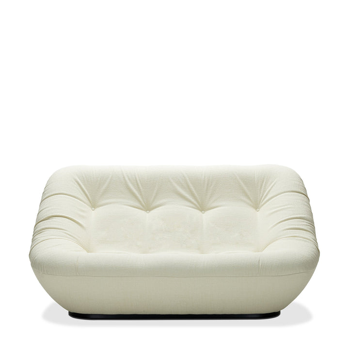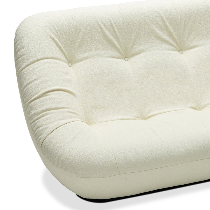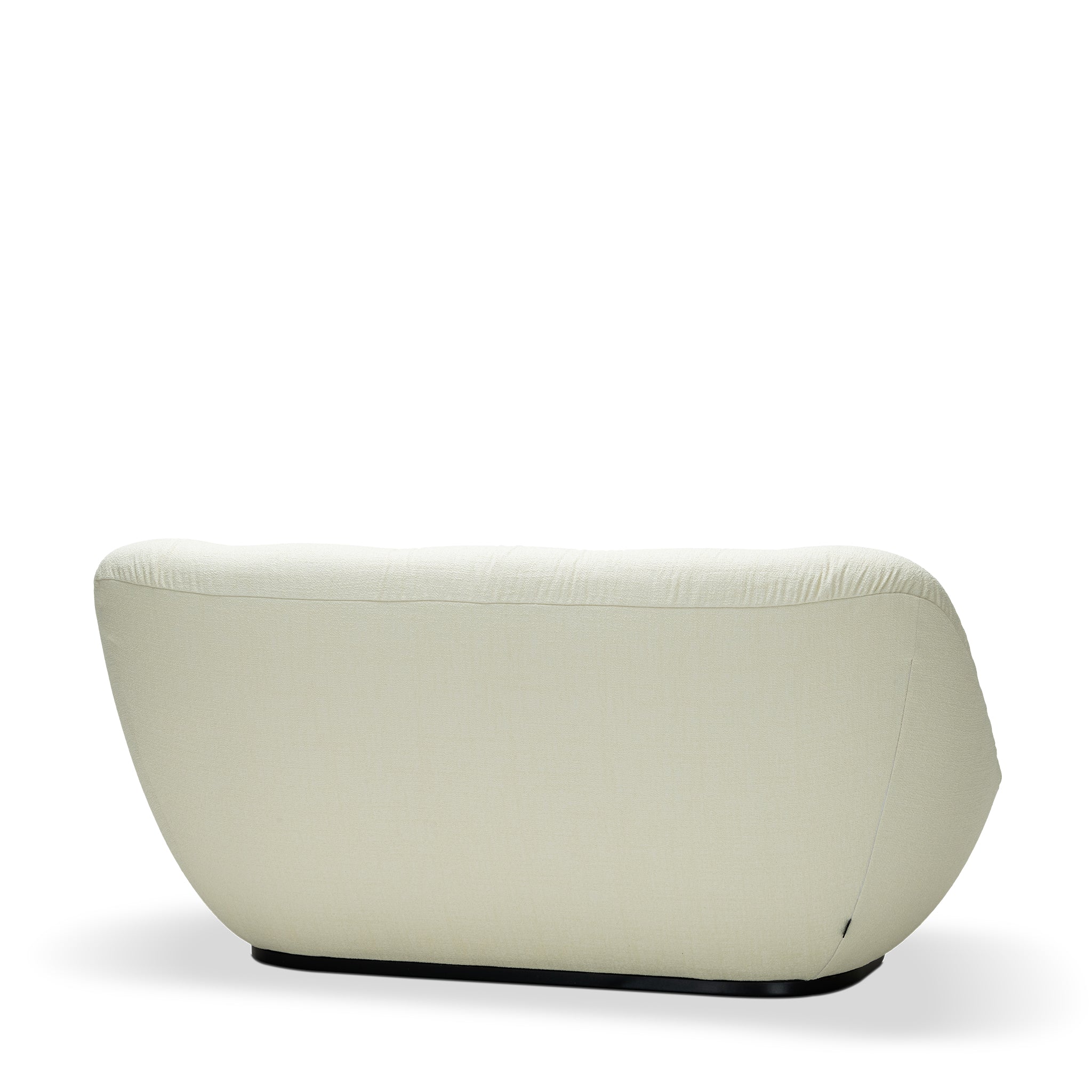The Bonnie 2-Seater Sofa's chic silhouette effortlessly blends classic design elements with a modern twist. It has clean lines and graceful curves that exude a sense of refined simplicity, while the button tufting adds a touch of vintage allure reminiscent of grandeur and luxury. Vera fabric upholstery in an Ecru tone conveys fine visuals.