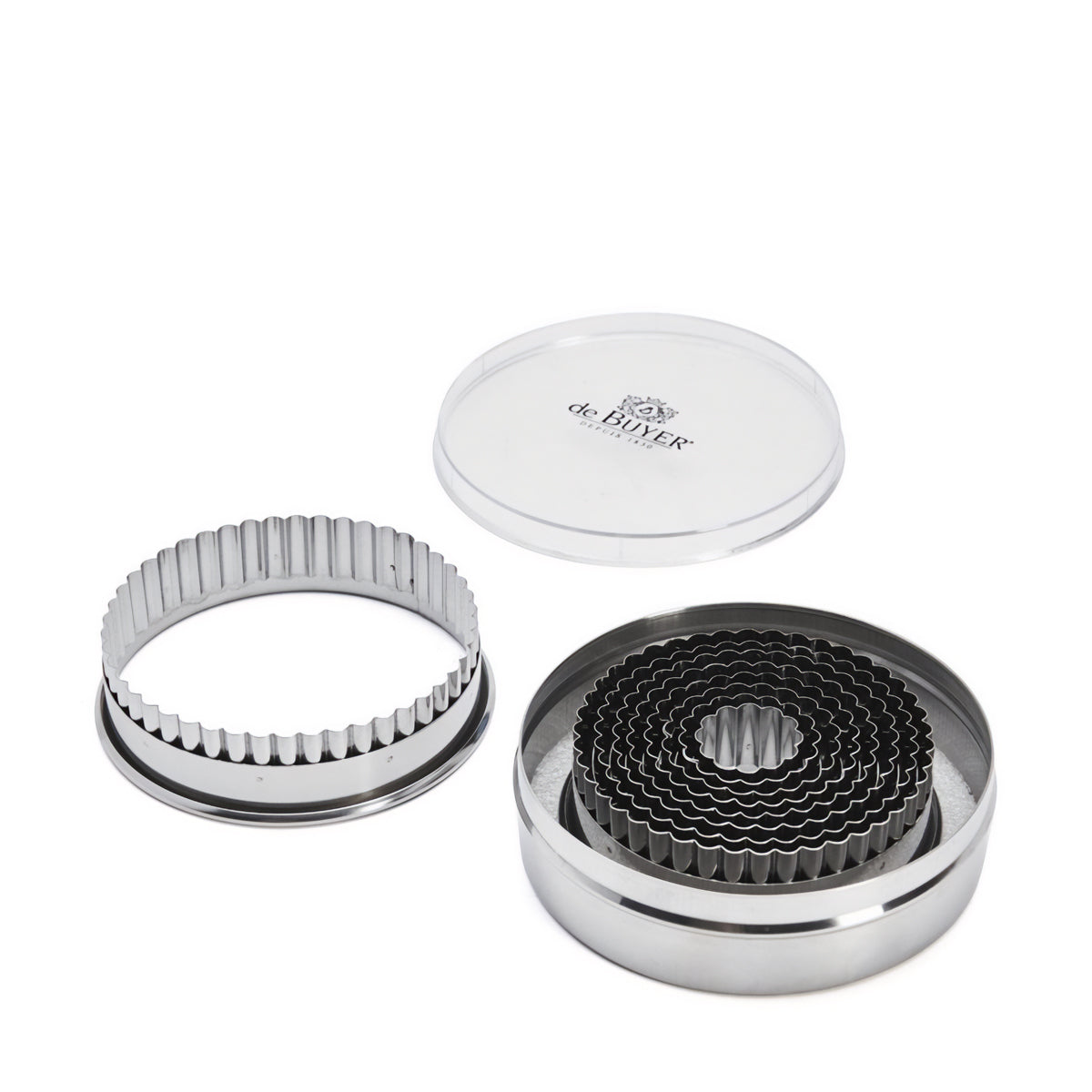 Revamp your baking arsenal with our Box of 9 Fluted Round Cutters, meticulously fashioned from robust Stainless Steel. Each cutter showcases a charming fluted round design, providing versatility and precision across various sizes. Ideal for crafting intricately detailed pastries, cookies, and more, these cutters serve as catalysts for creativity in every bake. Upgrade your baking experience and unleash your artistic flair with these precision tools.
