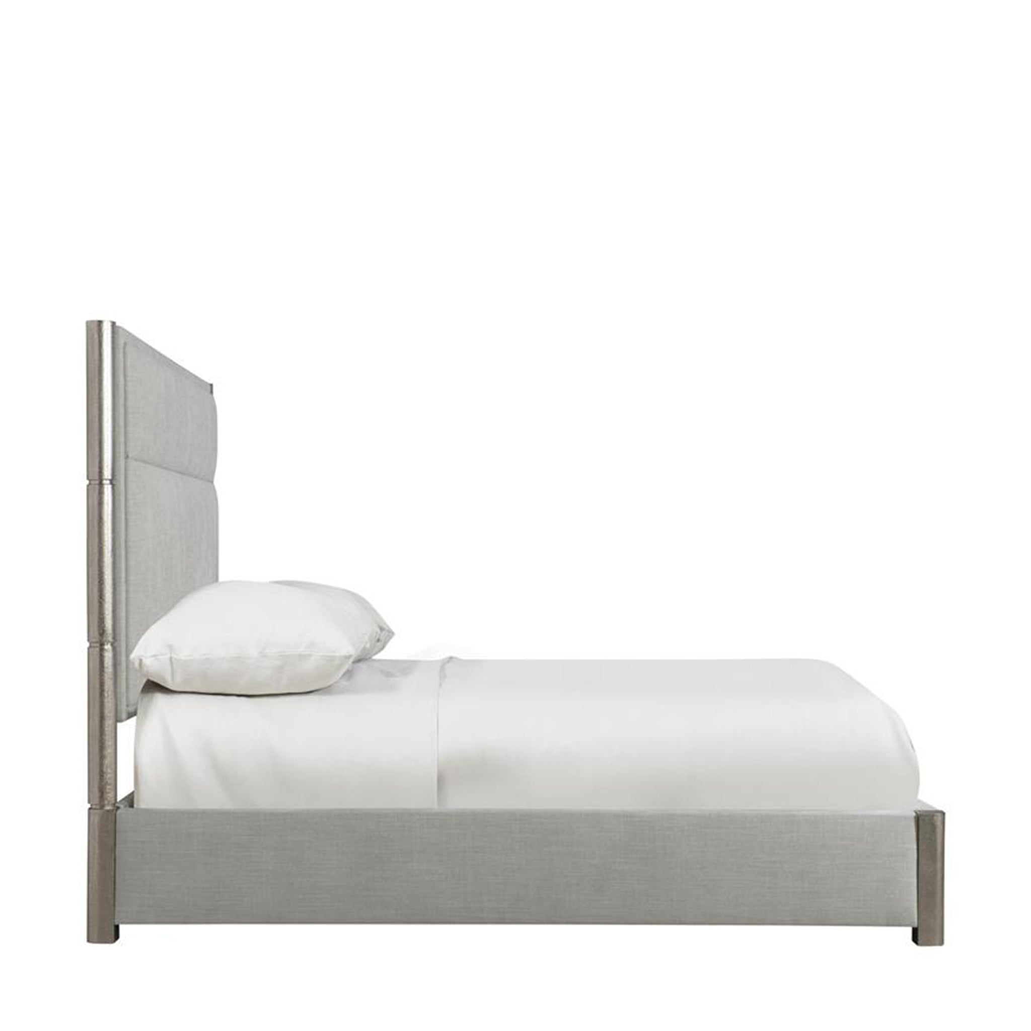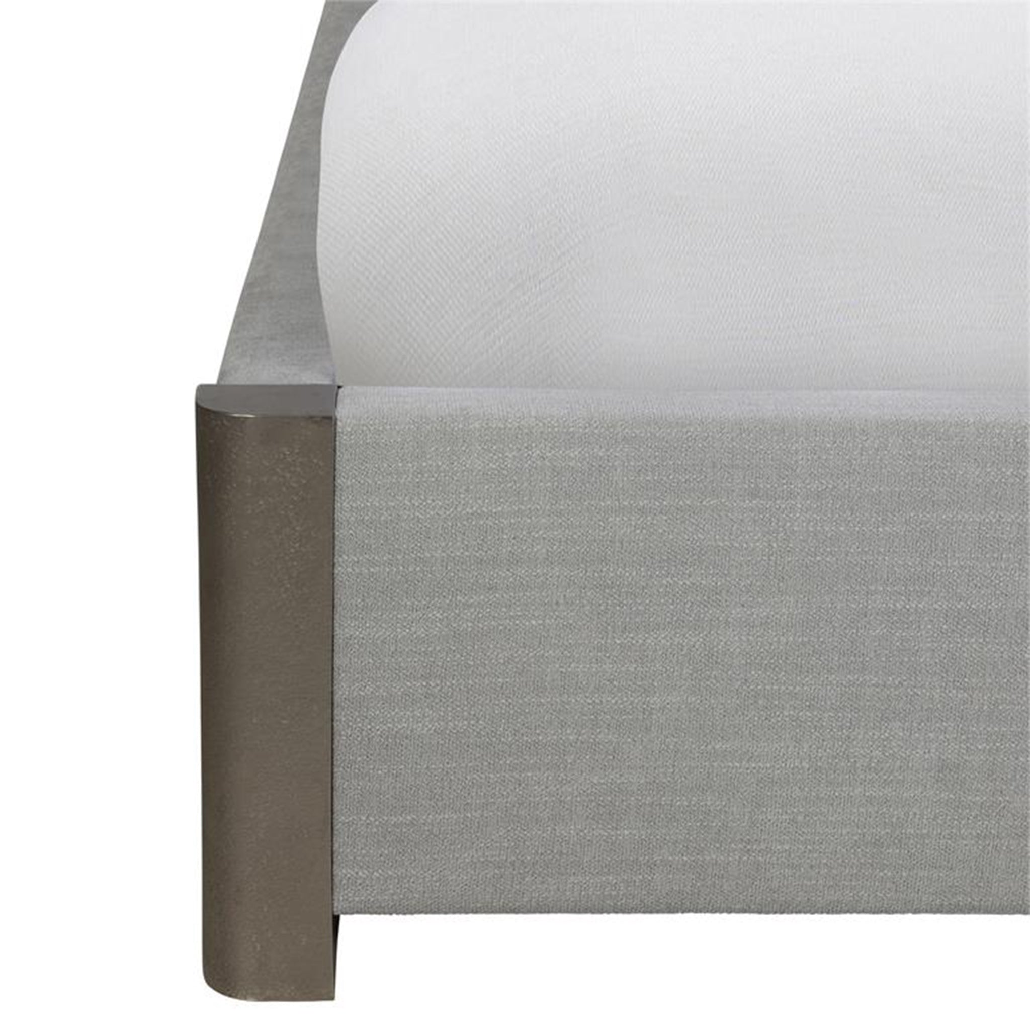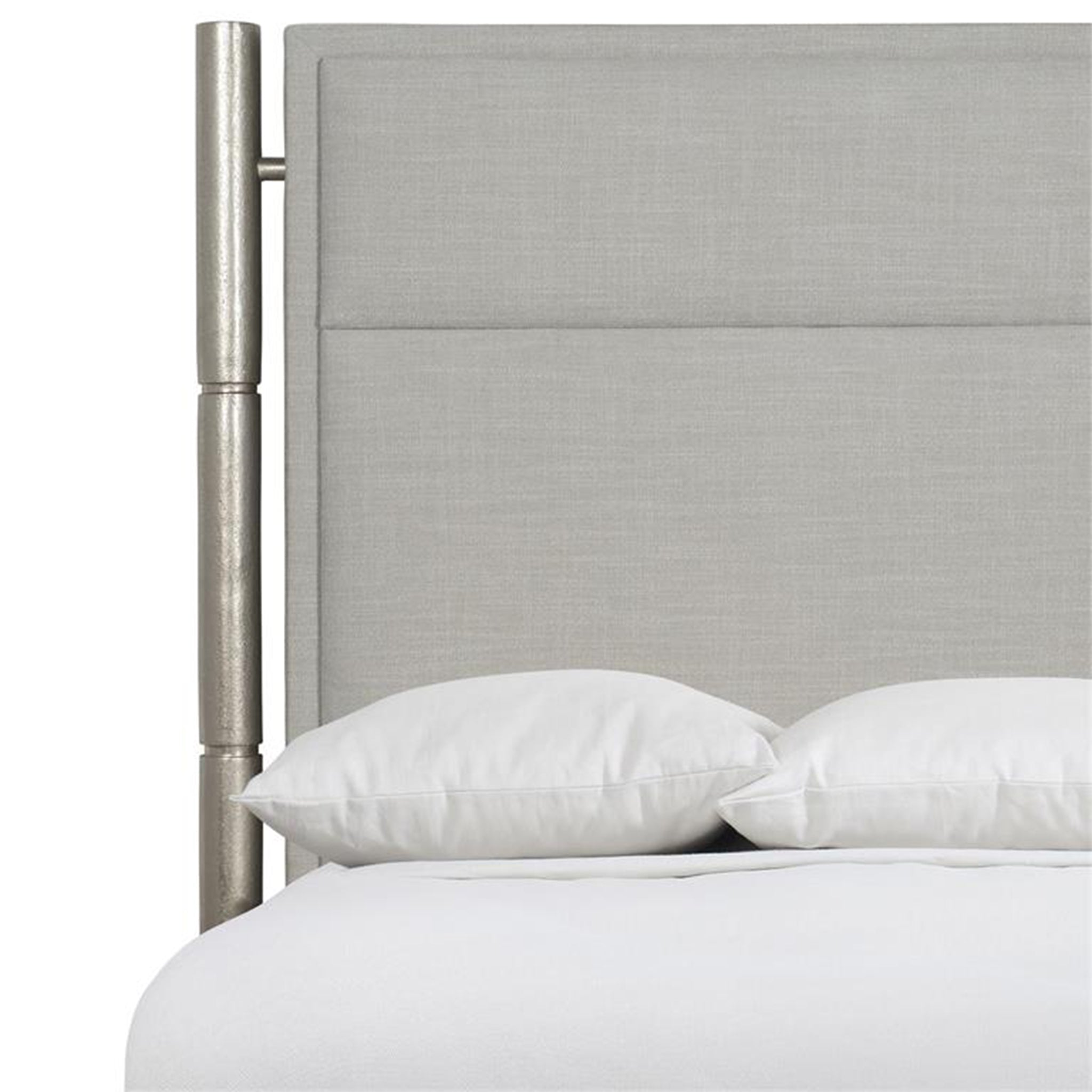 Give your luxe bedroom a touch of sophisticated brilliance with the Brynn Bed. Its upholstered body frame is beautifully complemented by the textured Aluminum posts guarding the head and foot panel. The Shiny Nickel finish further ensures indulgence.