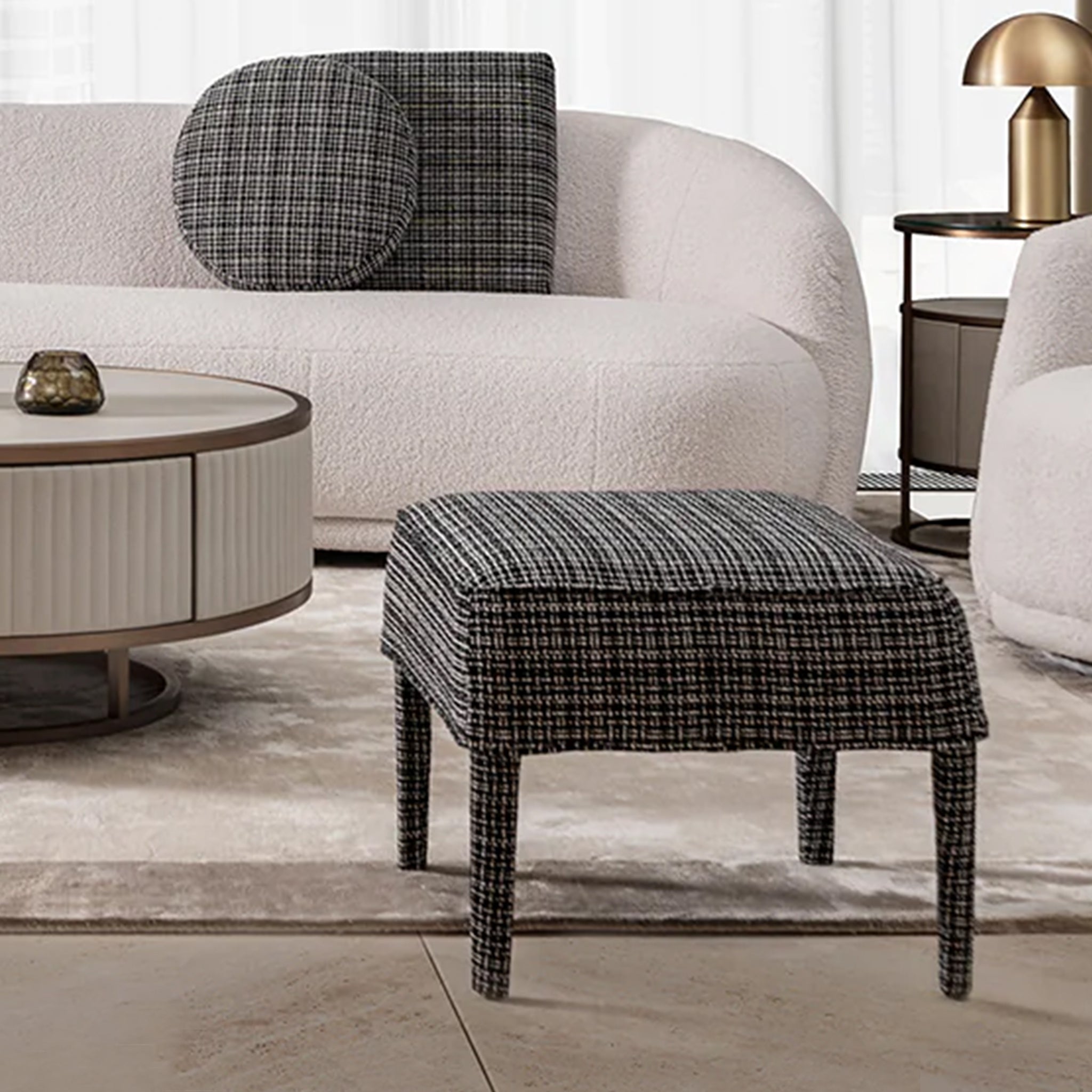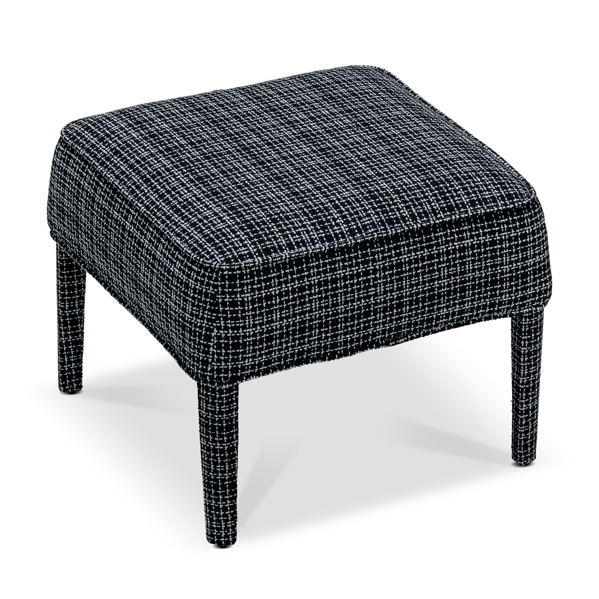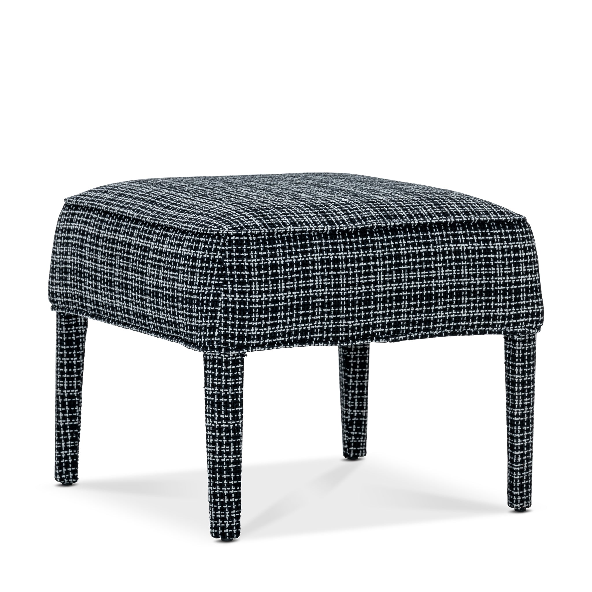 Whether you want to sit on it or lay your feet on it, this ottoman can do it all in style! It is dolled up in Chenille fabric in a fusion of Chroma Black and White shades for a flattering arrangement. Four tapered legs accented in the same fabric support this piece for an overall seamless look.