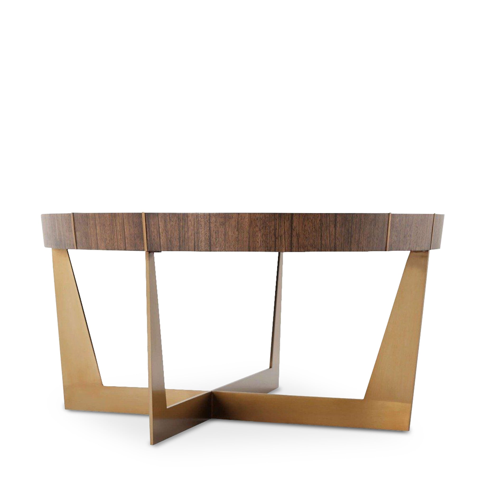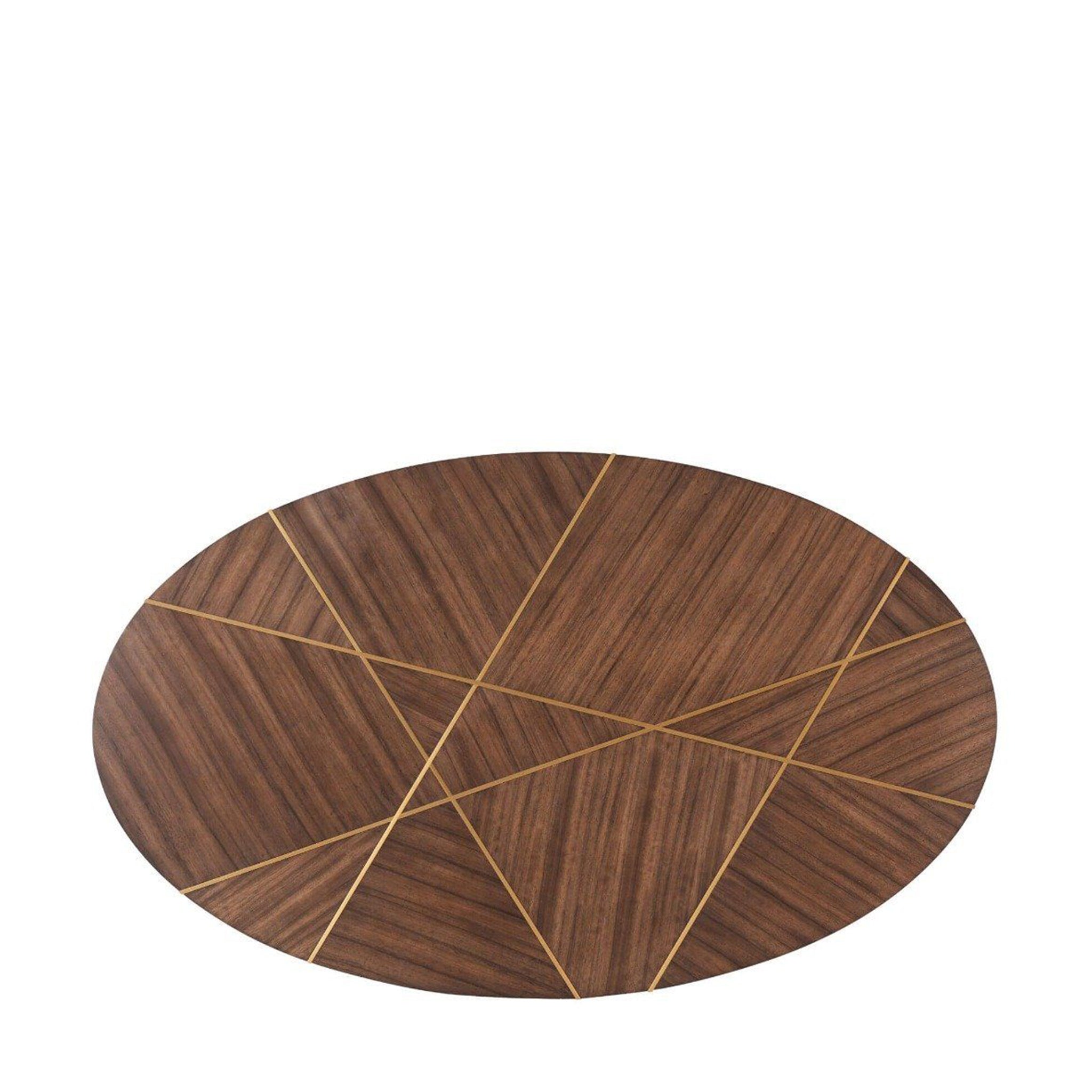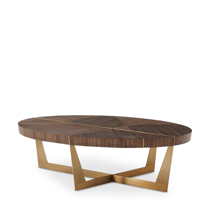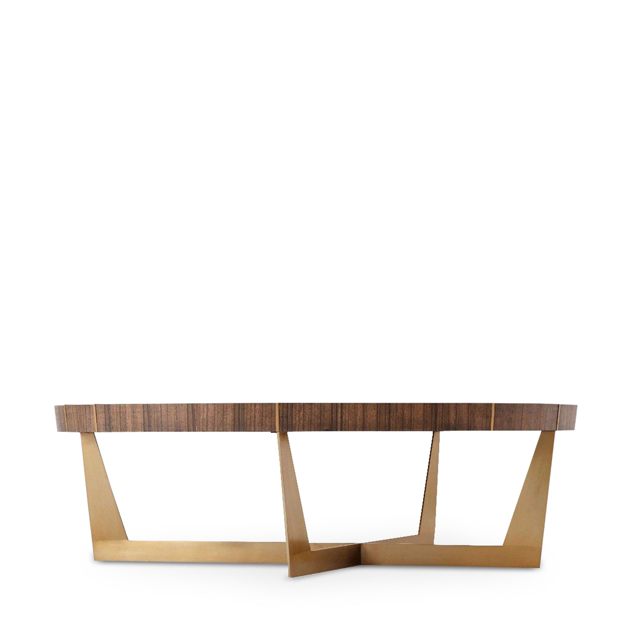 Create a focal point in your living room with the well-crafted Calais Cocktail Table. Clad in Paldao Veneer, the oval top is beautifully adorned with Brass inlaid details that capture your attention instantly. The angled base made of Steel is covered in Brass finish to balance out the overall design.