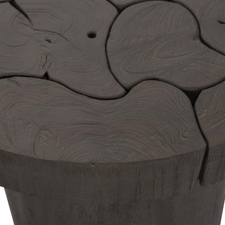 Resting on a cylindrical base crafted in Suar Wood, the Calavaras Side Table exudes a timeless look perfect for a traditional interior scheme. It is topped with Sliced Teak Wood to lend personality to its understated appearance. This piece is ideal for holding decorating with vases or glassware decor.