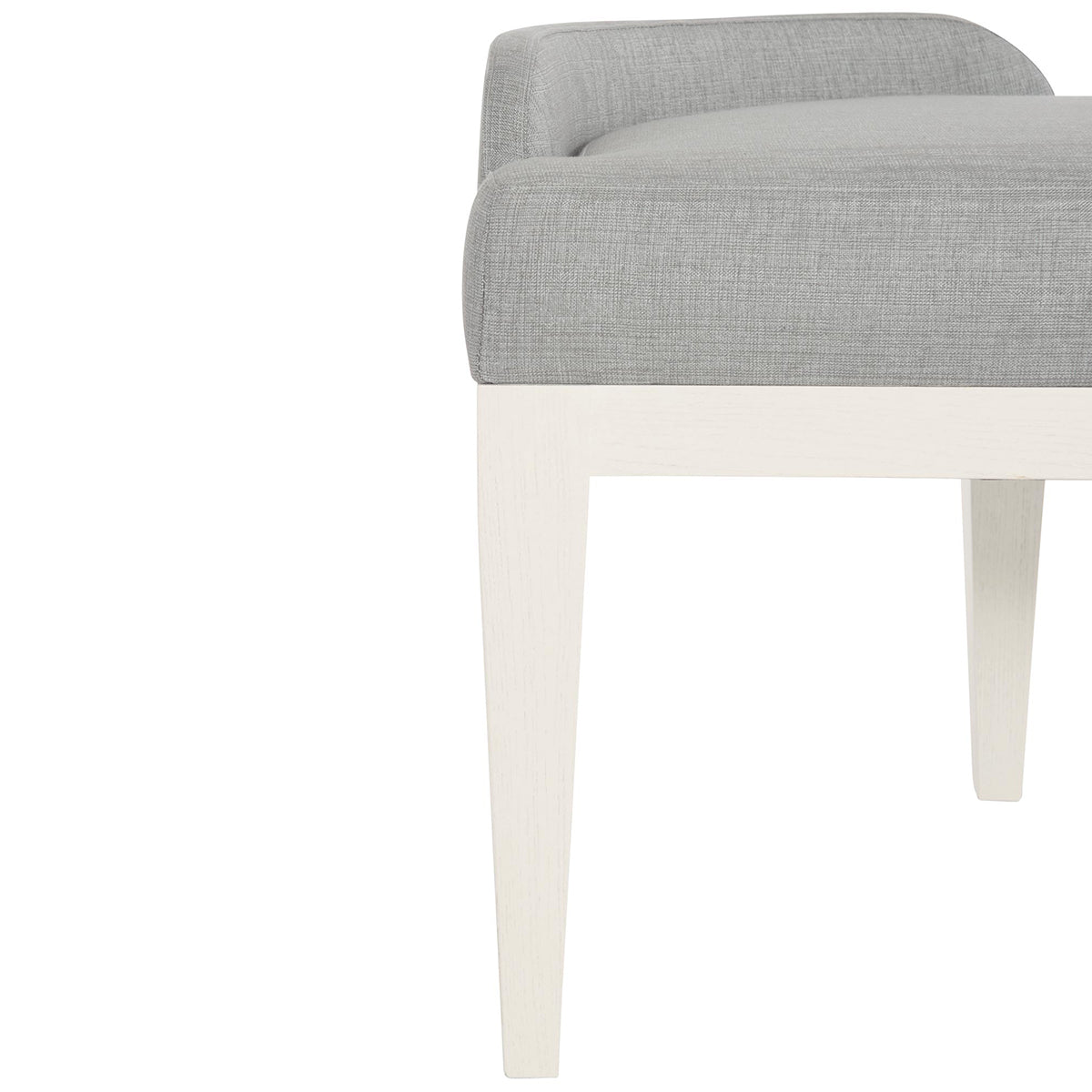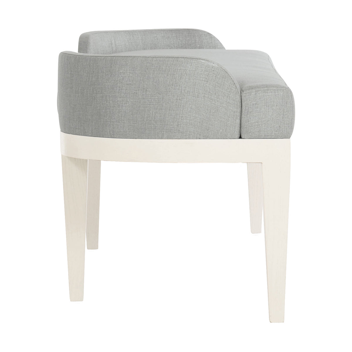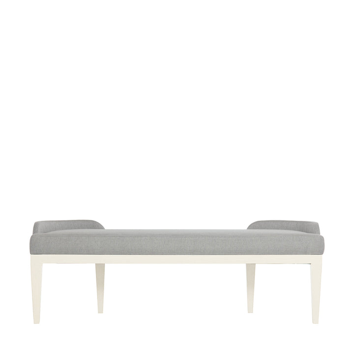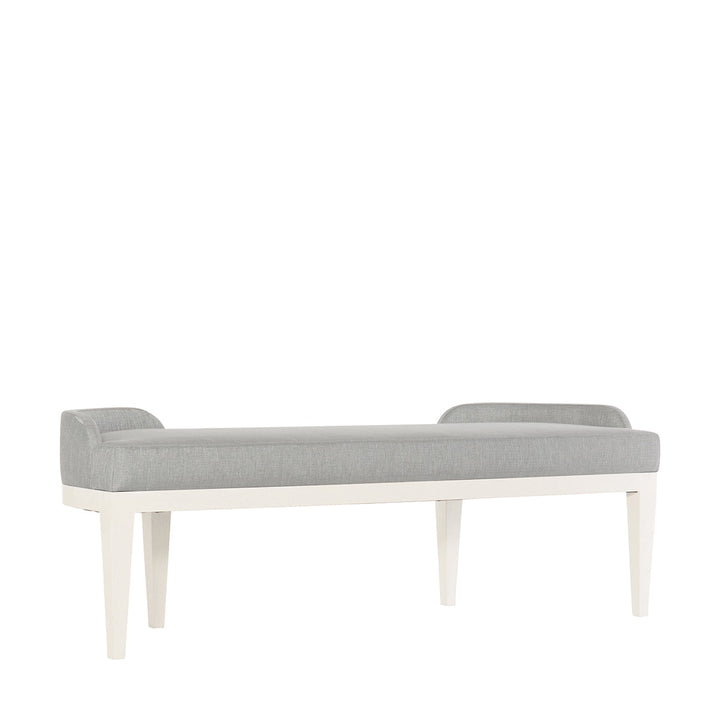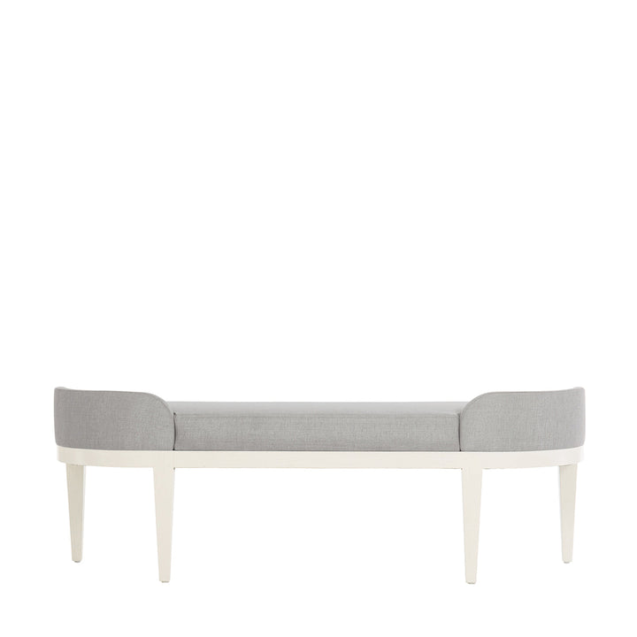 Calista Bench invites people to enjoy their relaxing time with the base of Silken Pearl finish and Gray upholstered seat. This piece is a decent option, including subtle styling with low curvy arms hugging at the back corners. The top view looks like a semi-circular form, making the setup easy at any location.