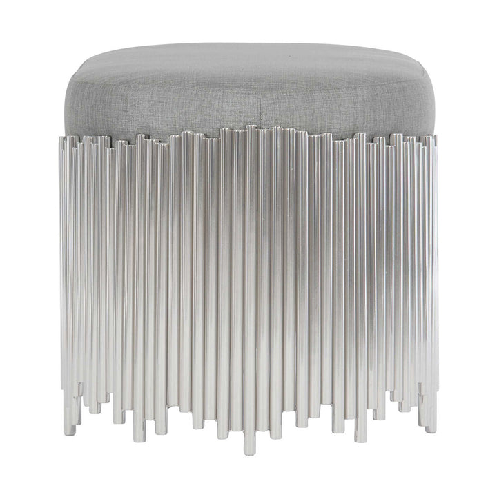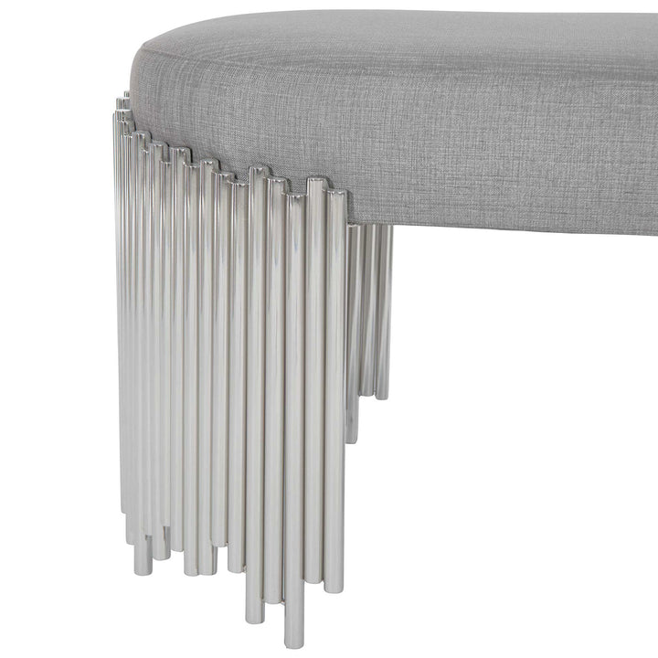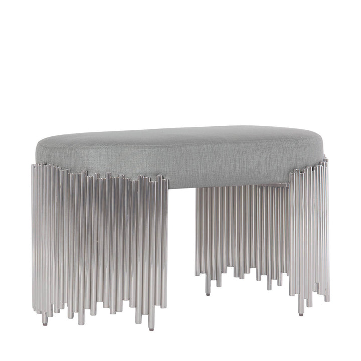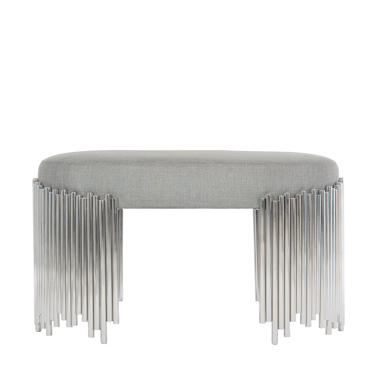 With tremendous comfort and lavish look, Calista Oval Bench offers a new look to the area. The upholstered seat box is made of smooth silver shade fabric. The legs are uniquely designed by skillfully attaching diverse heightened tubes for proper balancing. These silver stainless steel tubes are conjoined in such a manner to form an elliptical mold.