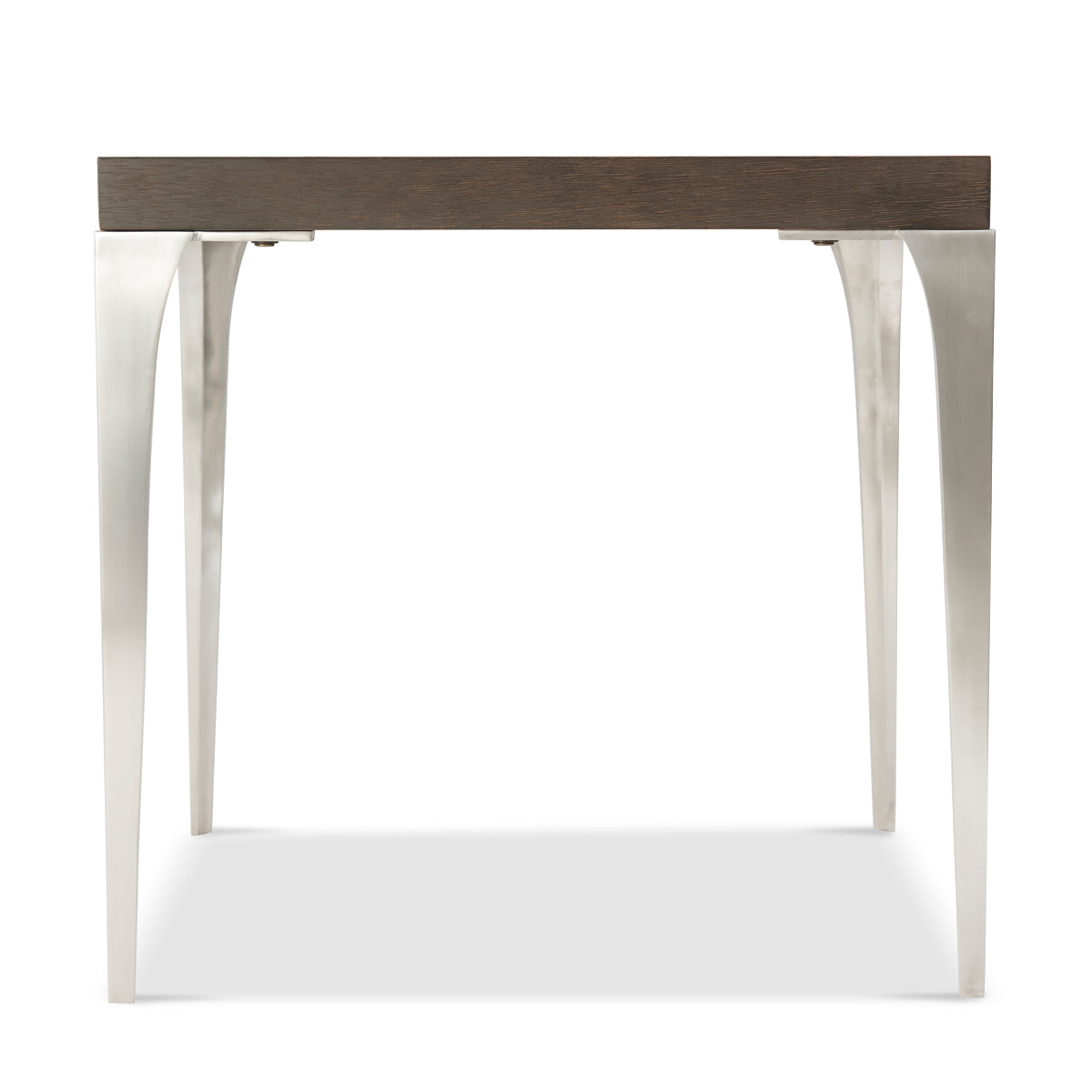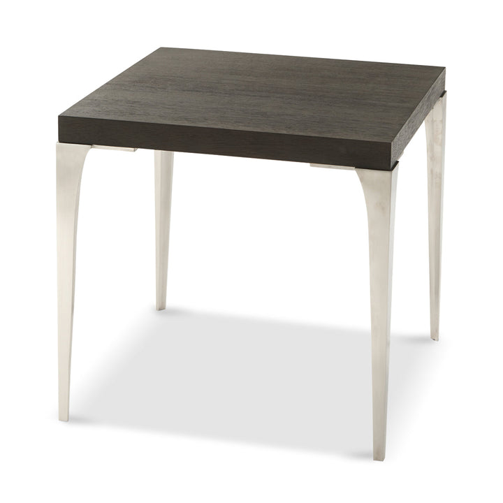 With its linear yet attractive silhouette, the side table Calvin garners attention in any seating area. Large enough to decorate with posies or a set of accessories, the table's Lati veneered top in Anish finish keeps aesthetics vibrant. Brushed Nickel finished legs are sleek and stylish, perfectly contrasting with the dark-hued top.