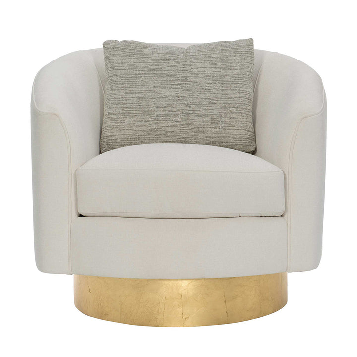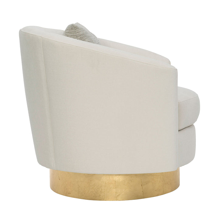 Add a sense of extravagance to the living space with this irresistibly charming Camino Swivel Chair. Mounted on a Swivel base featuring a Gold Leaf finish, the upholstered seat offers utmost comfort while you indulge in a fun-filled conversation with your folks.