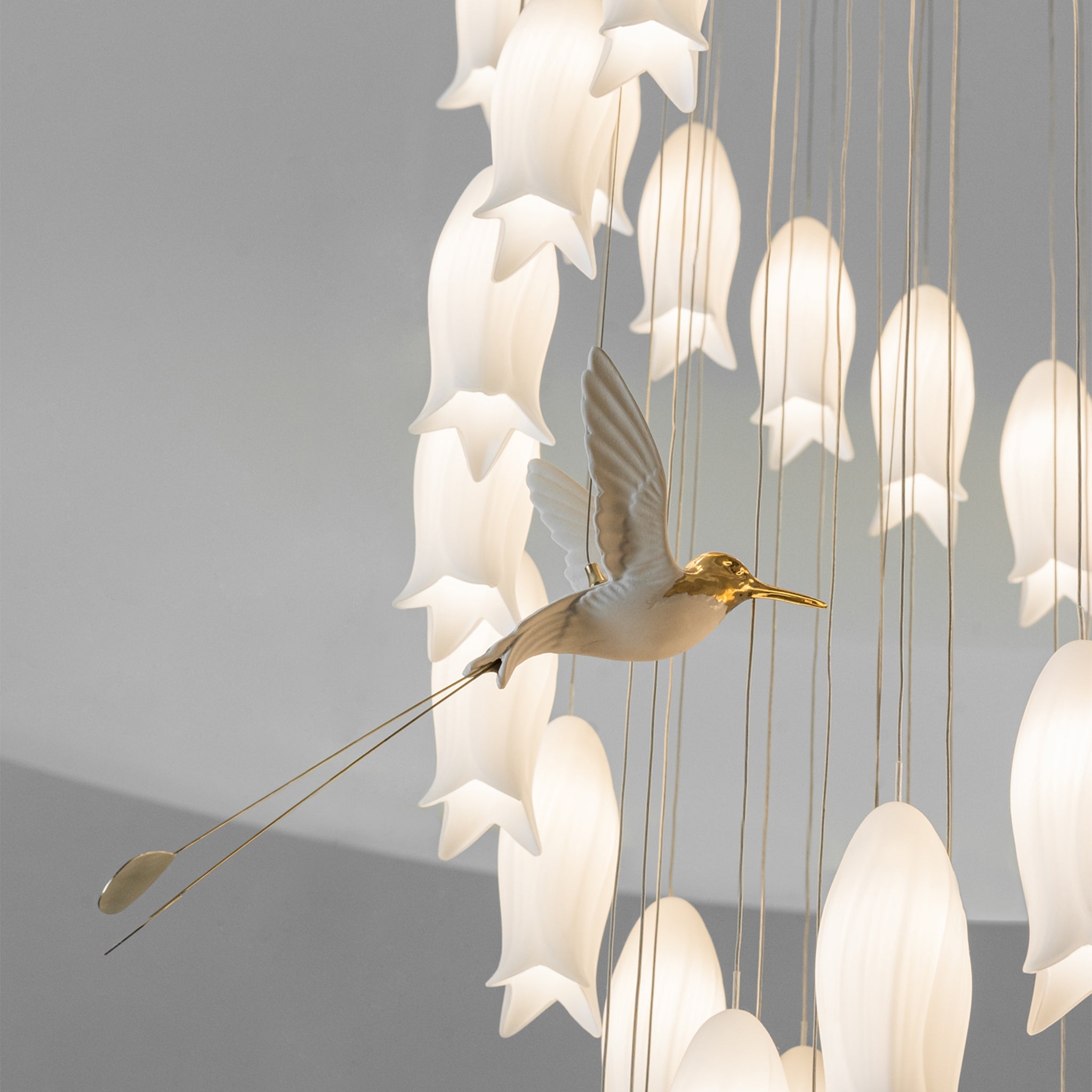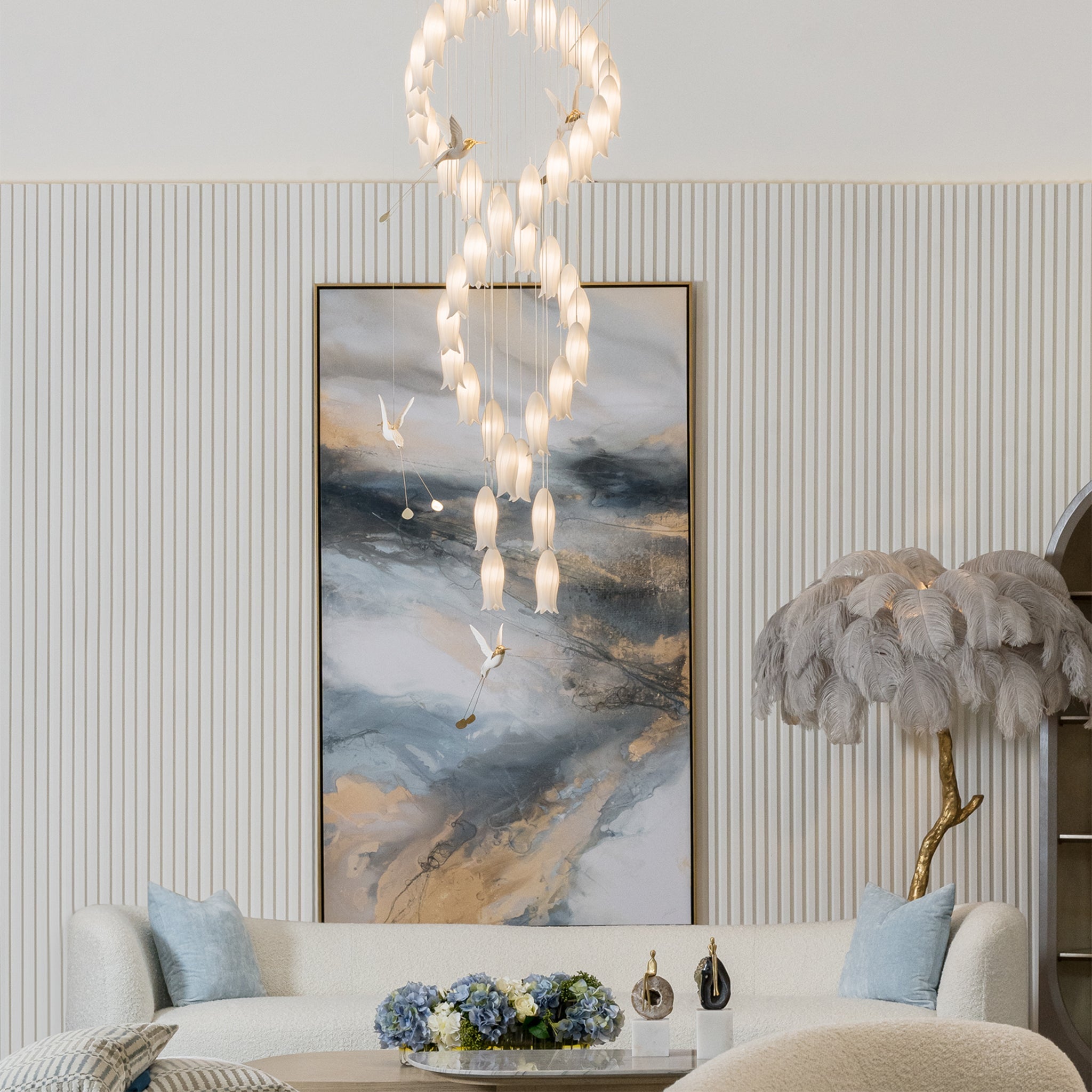 Making its way to contemporary elegance is the Celestine Empire Pendant Chandelier. The twisted metal arrangement fine tunes with glass and the white ceramic design. Diffusing a vibrant glow to the interiors, this ornamental piece is a fancy add-on to elevate the sophisticated charm of the space.