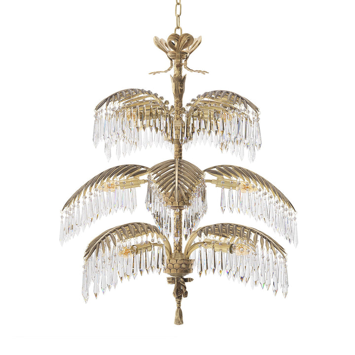 The Hildebrandt L Chandelier is a spectacular work of art ideal for lighting up your doorway or living area. It flaunts a palm tree form in Antique Brass finish carrying a glamorous and attractive look. This piece also features droplets of crystal glass that give it a luxurious aesthetic.