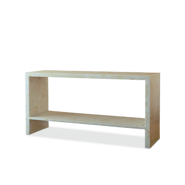 The piece features crazy-cut crystal stone sourced from the Philippines. The surface is elevated by delicate brass stringline inlays, adding a sophisticated detail that highlights the bold geometry.