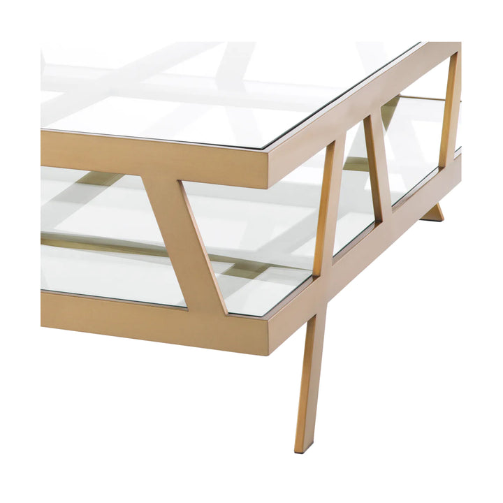 Introducing the Billinghurst Coffee Table, a stunning fusion of contemporary design and luxurious aesthetics. Wrapped in a brushed brass finish, this table exudes opulence and modern charm. Its random frame, visible through the clear glass tops, adds a touch of uniqueness and artistic flair. Embrace the captivating allure of the Billinghurst Coffee Table, a versatile and chic addition that complements any living space with its captivating design.