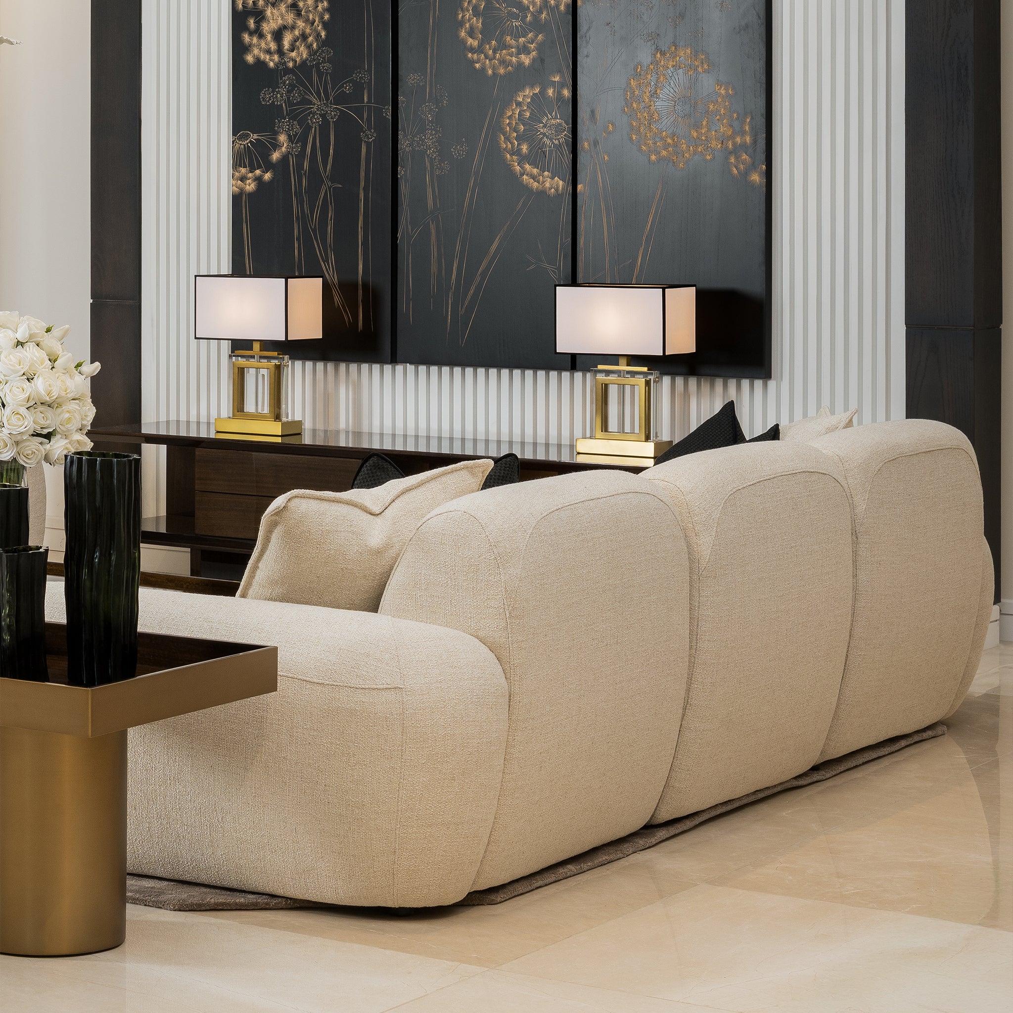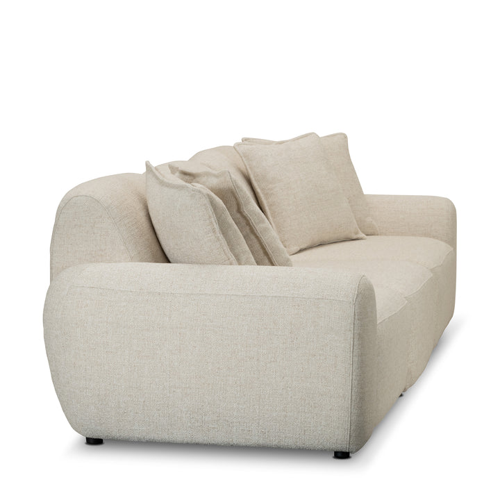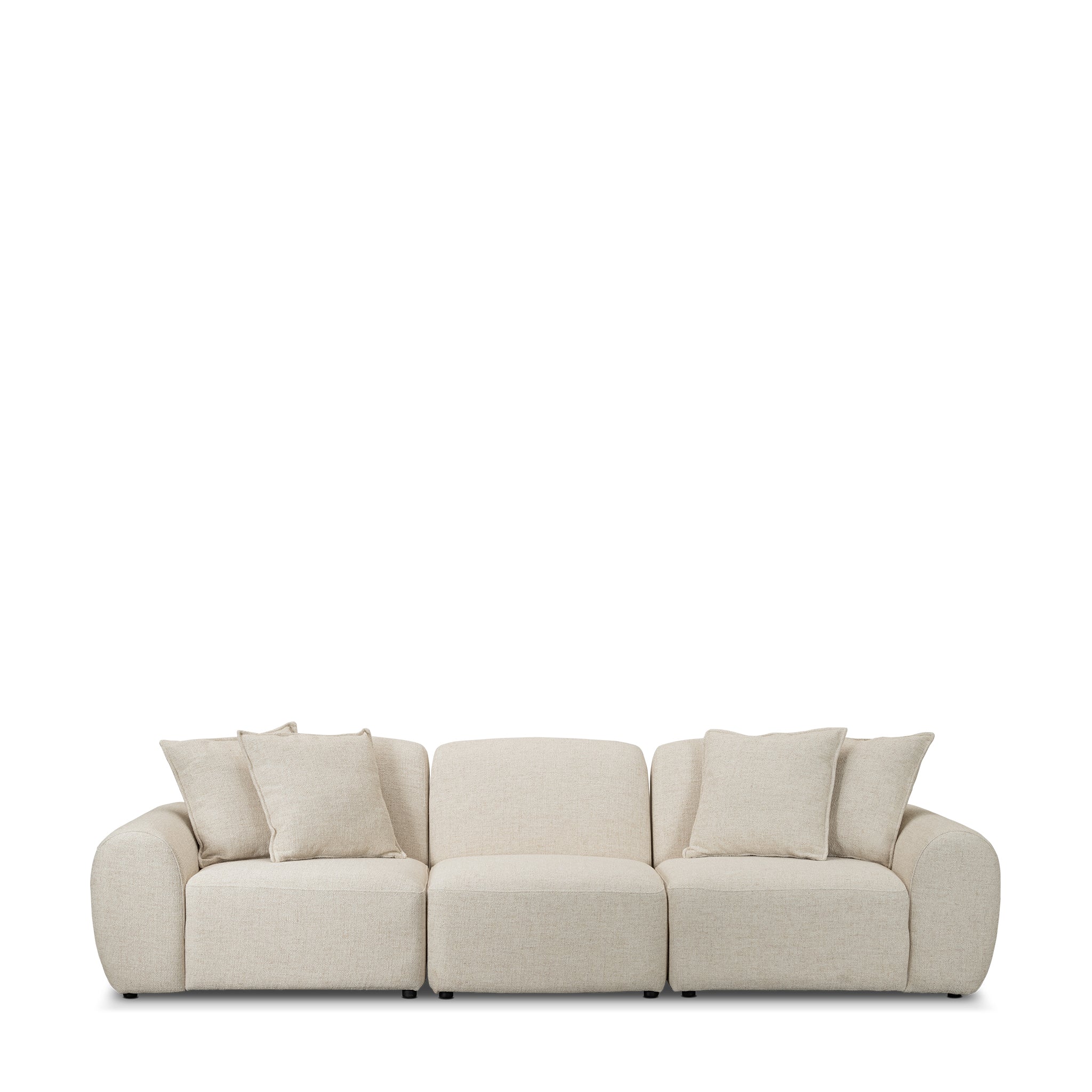 Elevate your living space with this minimalist 3-seater sofa, upholstered in jute beige fabric. Designed with deep seating and generously padded armrests, it balances both comfort and modern design.