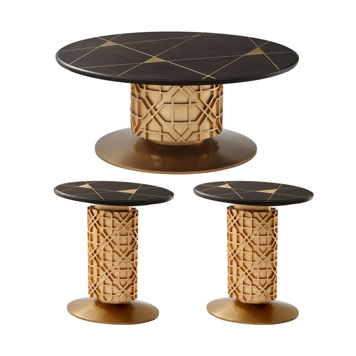 Elevate your living space with the Colter Cocktail Table Set II, a stunning fusion of classic charm and modern allure. The Black Marble tops exude timeless elegance, harmonizing effortlessly with the abstract Brass-finished bases that embody contemporary sophistication. This set, comprising one cocktail table and two side tables, is not just furniture—it's a functional masterpiece, ready to showcase your style and adapt to the ever-changing landscape of design.