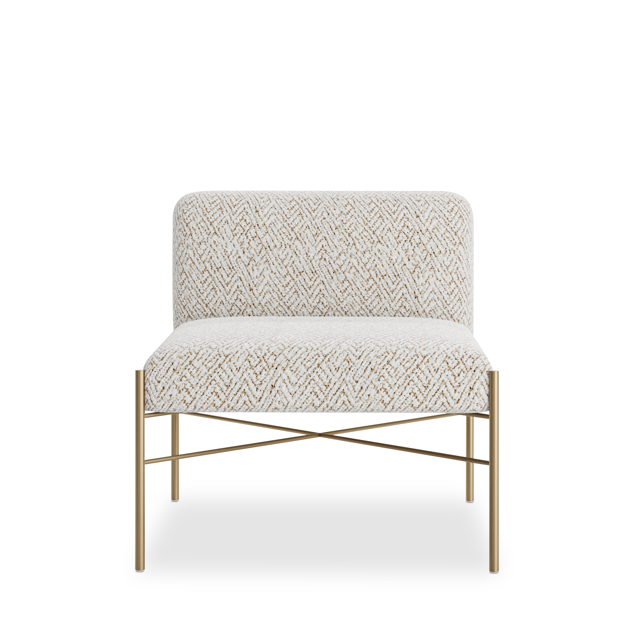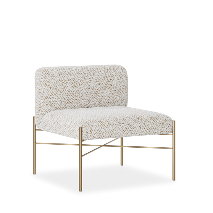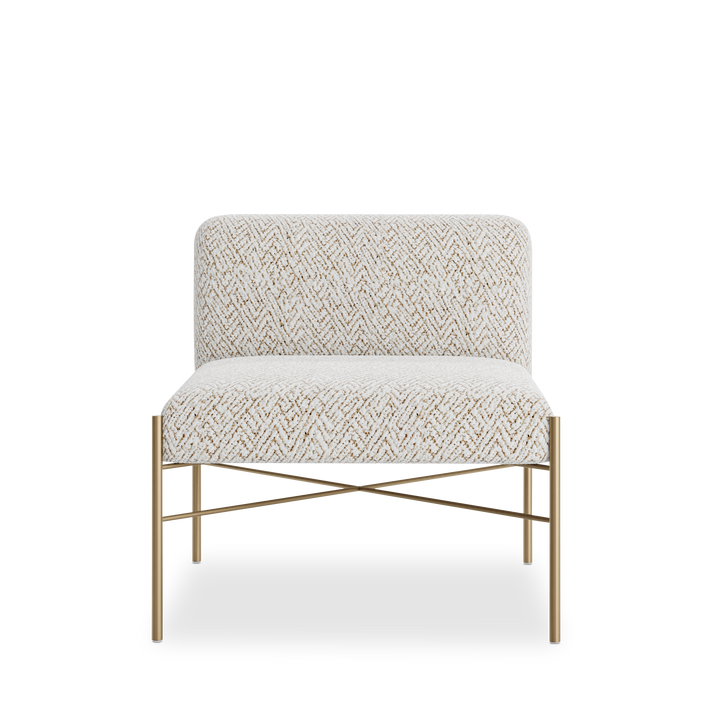 Upholstered in gina ivory fabric, this piece combines comfort with lasting durability. Its legs, finished in brushed bronze, add a subtle metallic accent that beautifully complements the upholstery.