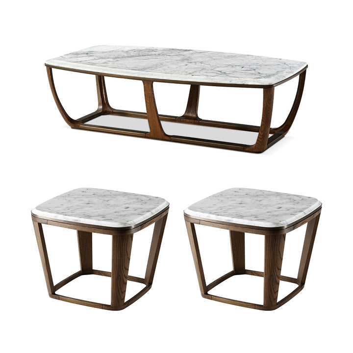 Step into sophistication with the Converge Cocktail & Accent Tables, where exquisite craftsmanship meets modern chic! The Hull-shaped Pure Pearl beveled Marble top steals the spotlight, radiating opulence and elegance. Paired with sleek Stainless Steel molding and a stunning Heritage Bronze finish, these tables are a true testament to refined taste. The sturdy oak base, finished in Caribbean Cask, adds a touch of natural charm and durability, perfectly blending with the Bronze stretchers for added stability and style.