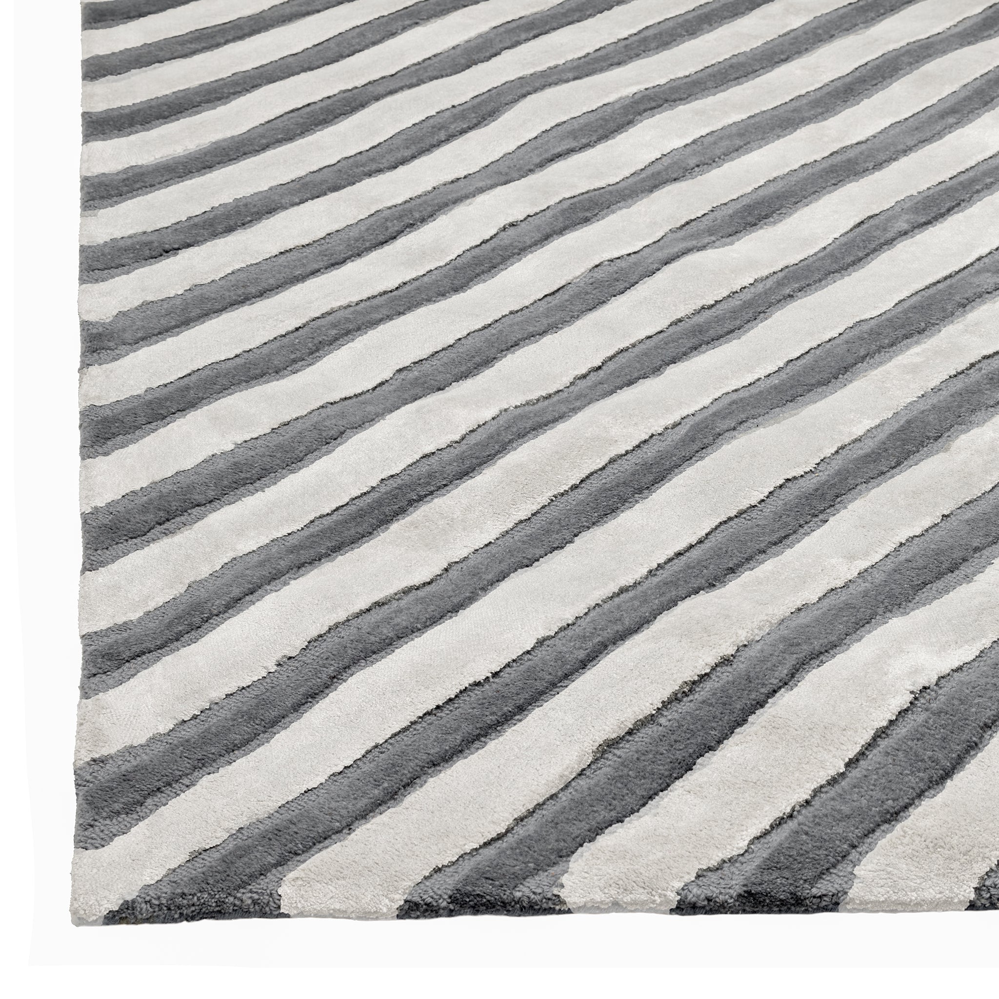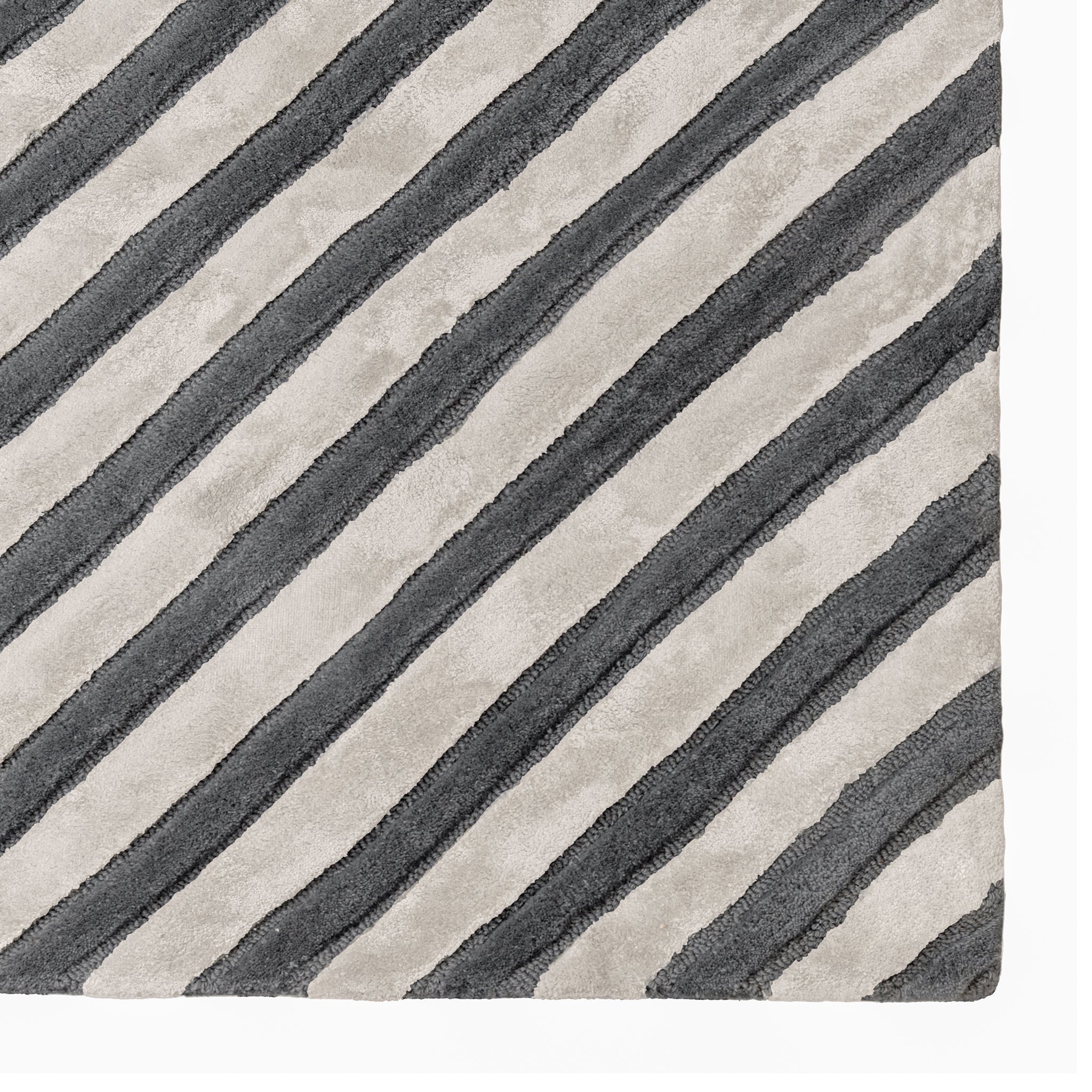 The striking composition of the Crossway Carpet will keep your interior poised and balanced. Its dark and light Grey colors feature a fine-looking diagonal pattern that is easy on the eyes. The hand-tufting technique in cut and loop pile construction of New Zealand Wool, Viscose, and Cotton provides the design with perfect volume and softness. Round out your decors to the next level of elegance by incorporating this piece.