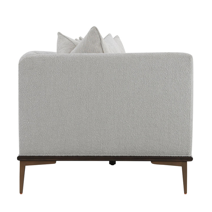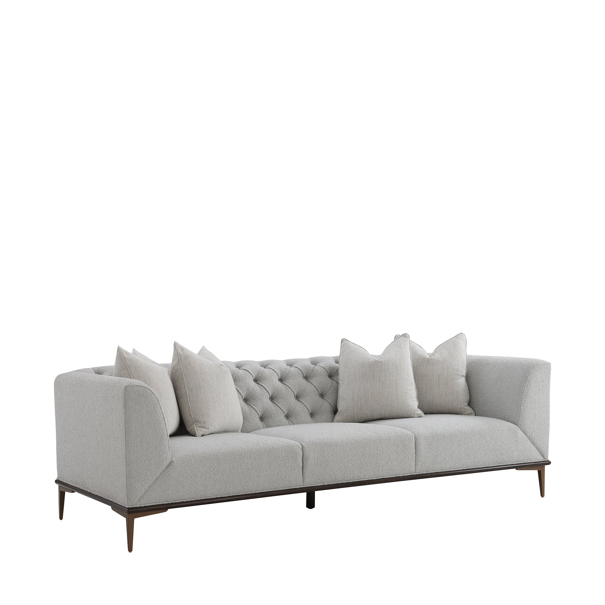 The Danniell Sofa is a luxurious and stylish seating option with premium materials and fine craftsmanship. It includes a sturdy hardwood frame, tufted backrest, soft cushioning, and high-quality upholstery. The sofa comes with pillows promising elegance, comfort, sophistication, and indulgence.