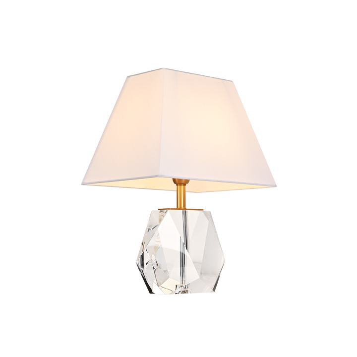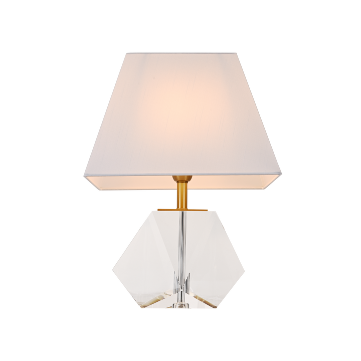 An Art Deco–inspired table lamp showcasing geometric precision and a faceted crystal base, effortlessly blending artistry and function with architectural sophistication.