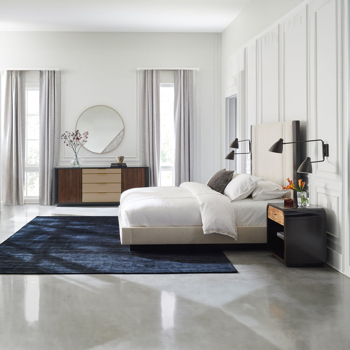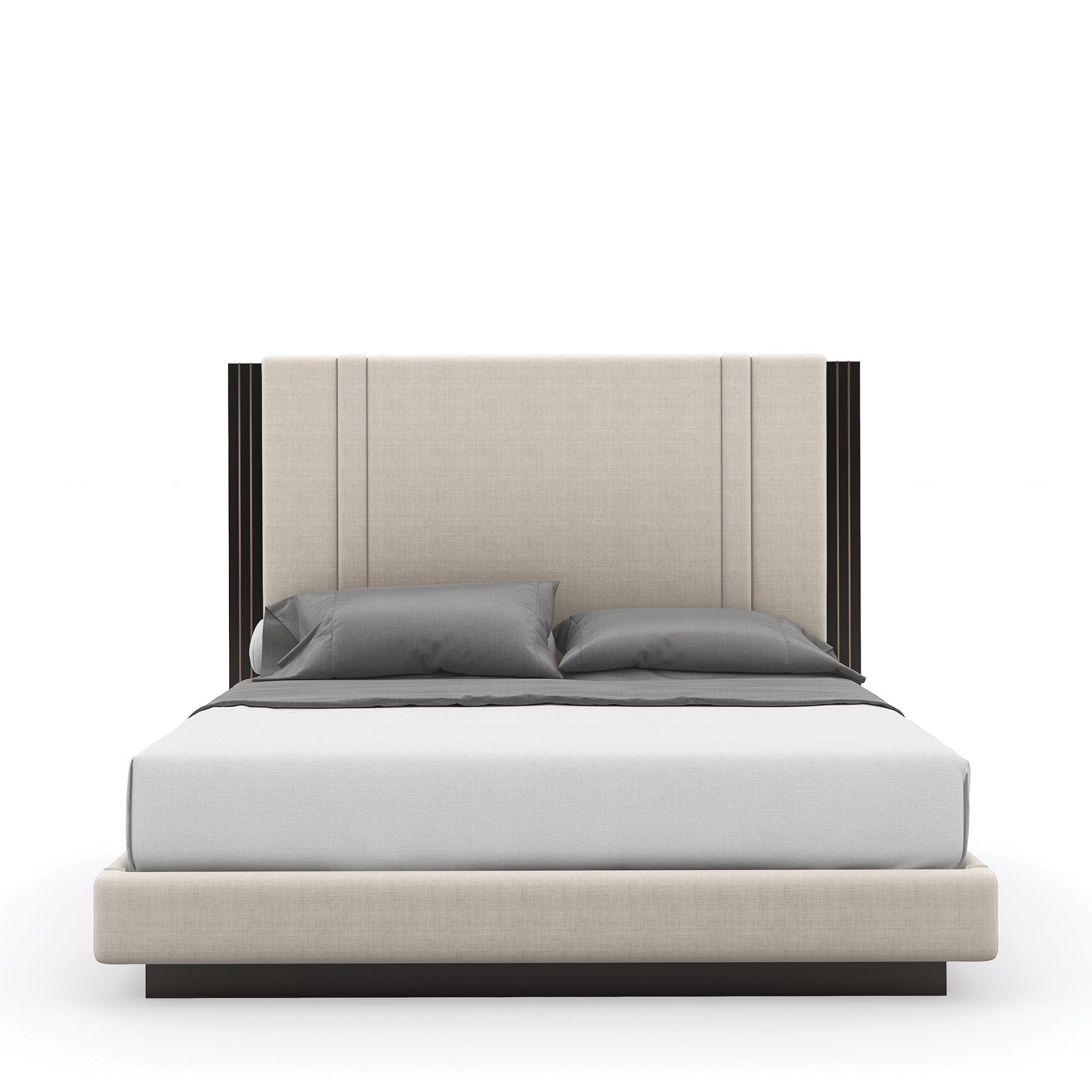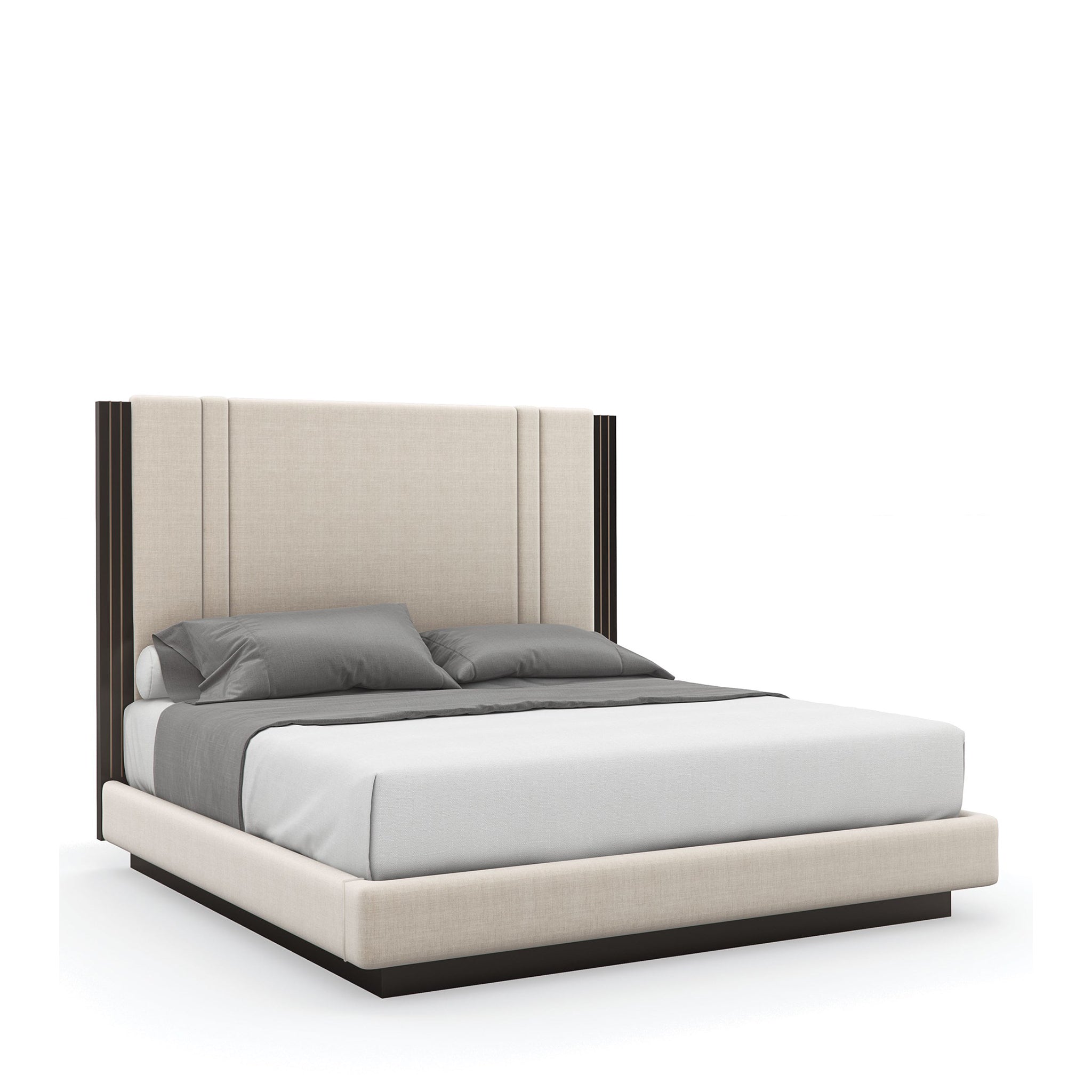 Say hello to the Decent Proposal King Bed – where comfort meets chic vibes! Drift into dreamland with its plush upholstered headboard, footboard, and side rails in a soothing neutral-tone fabric. The headboard takes a delightful twist with Dark Chocolate trim and a touch of glam from the Champagne Gold metal inlay. Resting on a charming Dark Chocolate plinth base, this bed is your dreamy haven!
