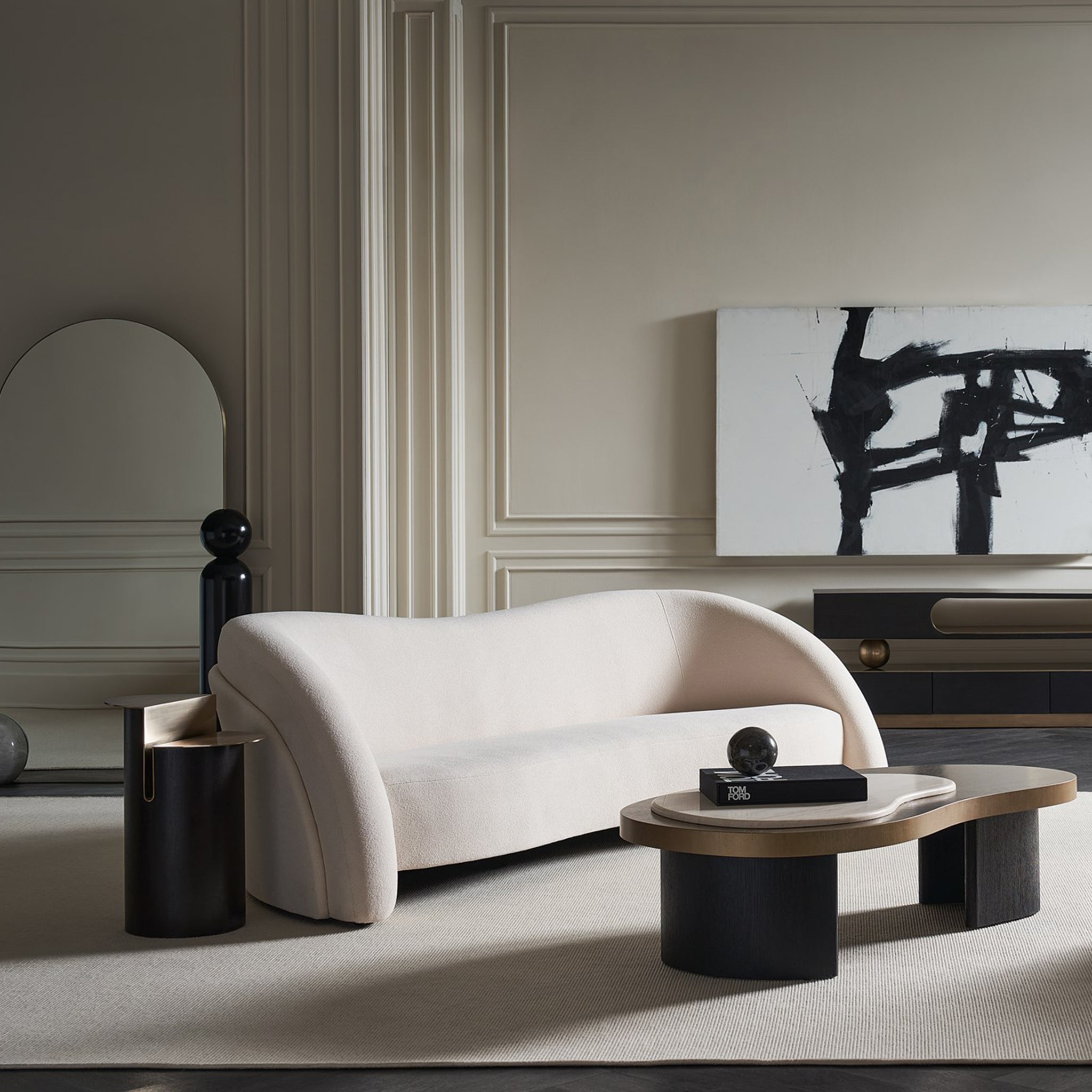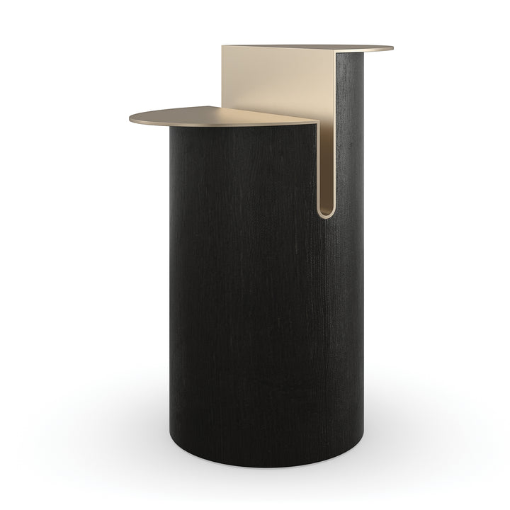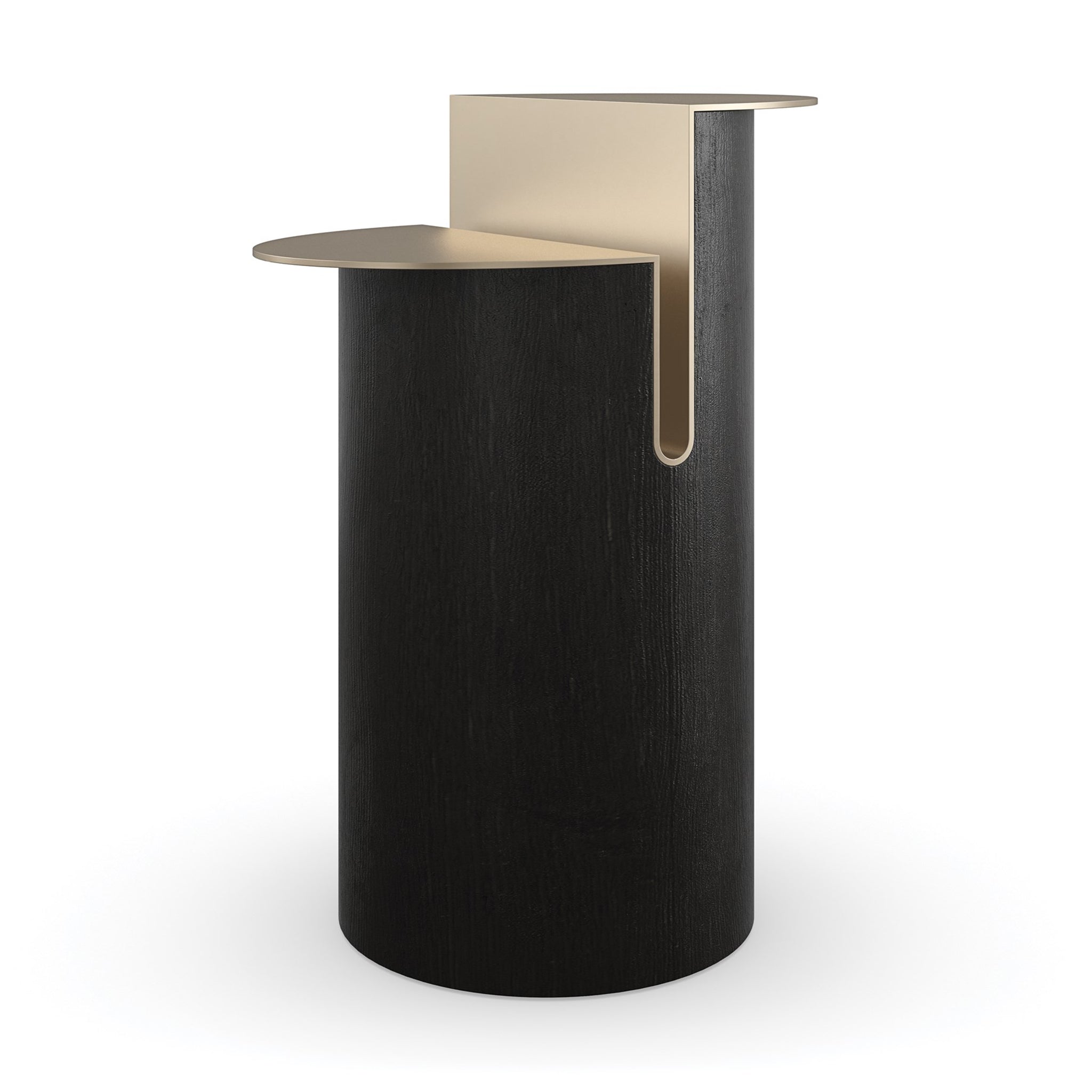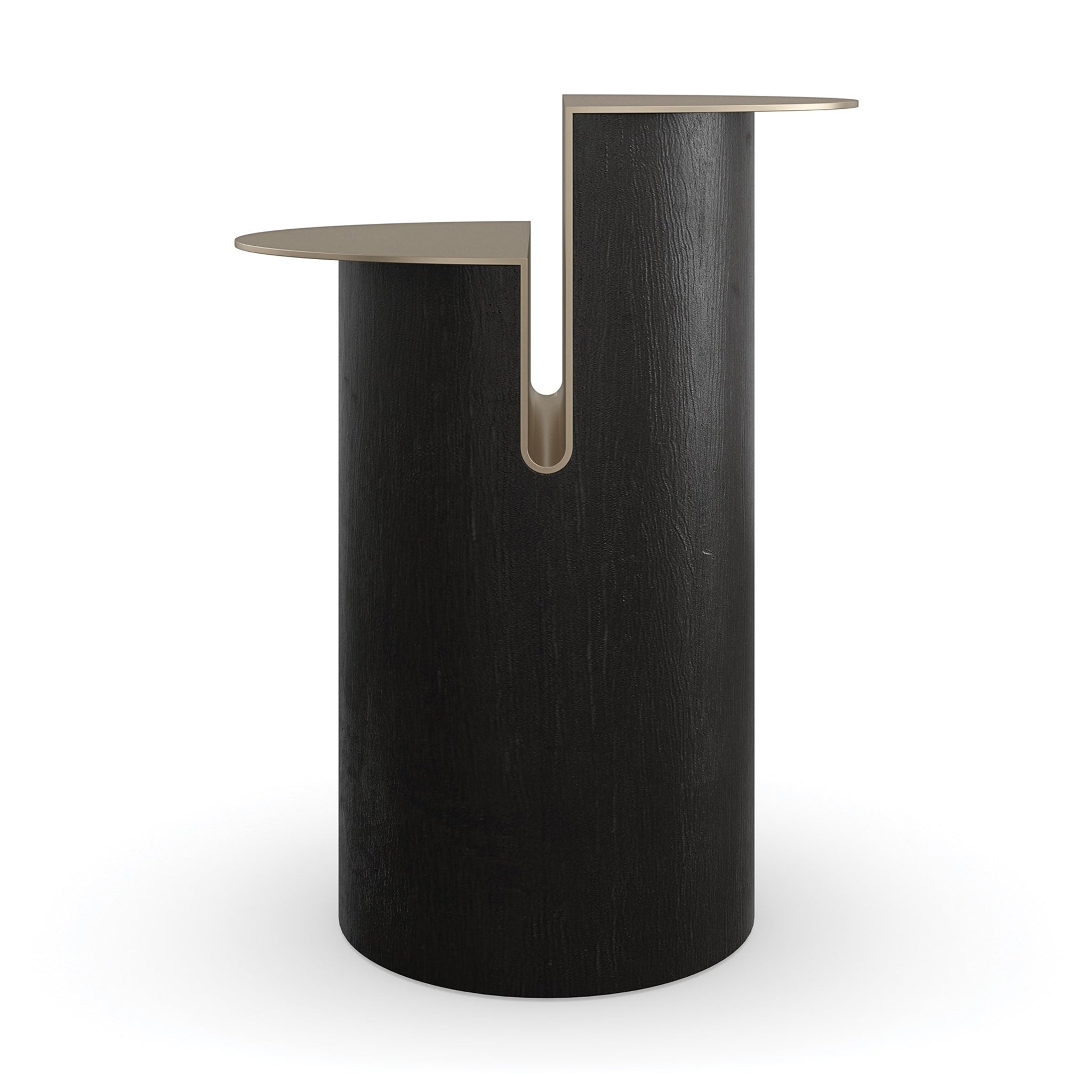 Introducing our artful End table, where a split top surface at varying heights adds movement and surprise. Crafted with a simple yet sophisticated material mix, its rich Modern Walnut base is beautifully complemented by Lucent Bronze Metallic accents. An exercise in duality, this table draws the eye and is perfectly proportioned for holding a beverage or book, making it both functional and visually captivating.