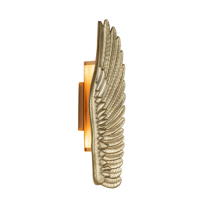 Get a fantastic piece of lighting Feather Wall Lamp Right Brass that adds an element of elegance and sophistication to any space. It features a delicate Brass frame with a Right-facing orientation and is adorned with a natural feather design that gives it a soft and ethereal quality. The feathers create a beautiful diffused light that is perfect for creating a warm and inviting atmosphere in any space to create a cozy ambiance.