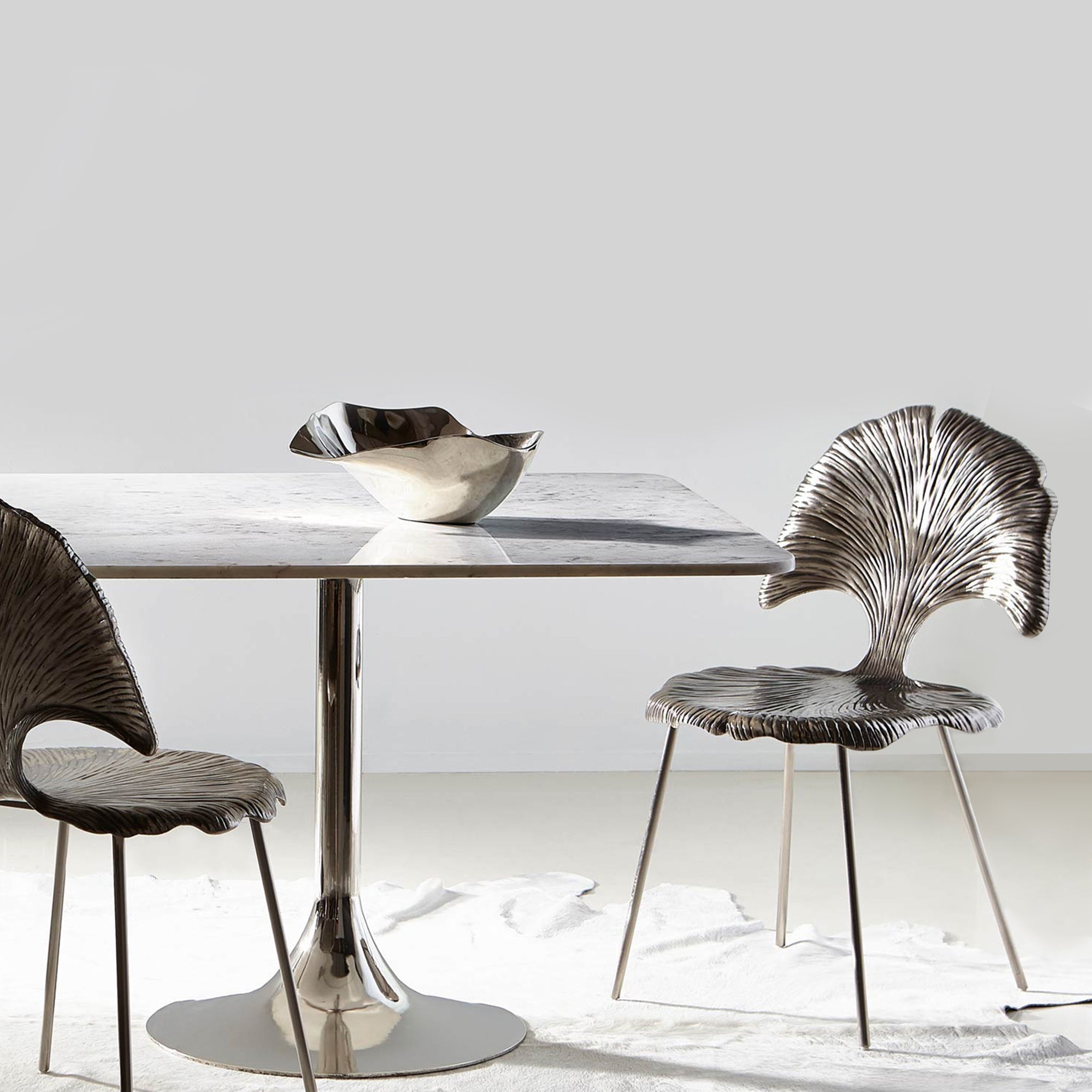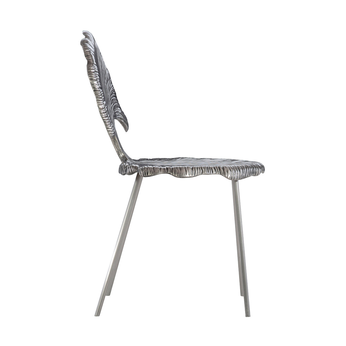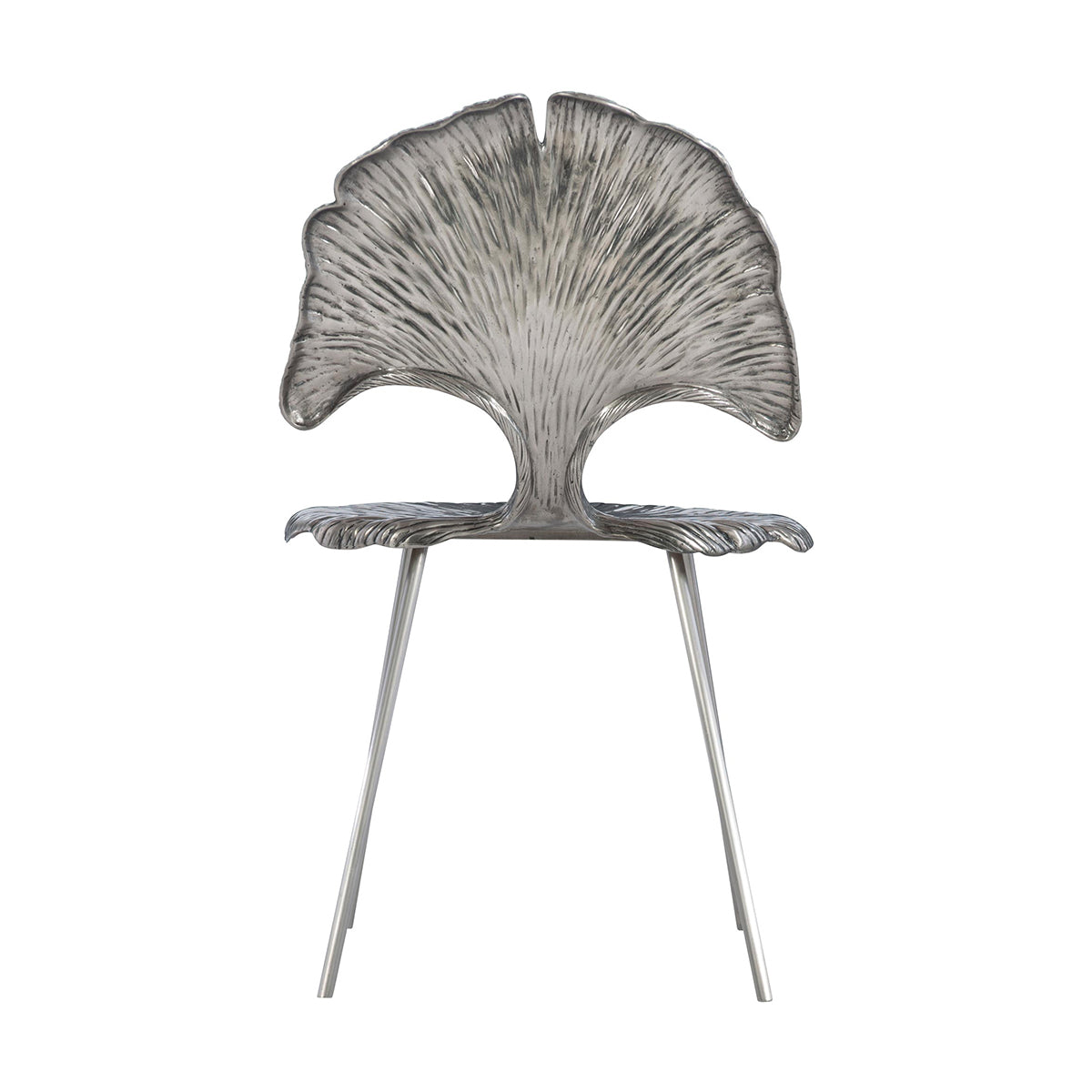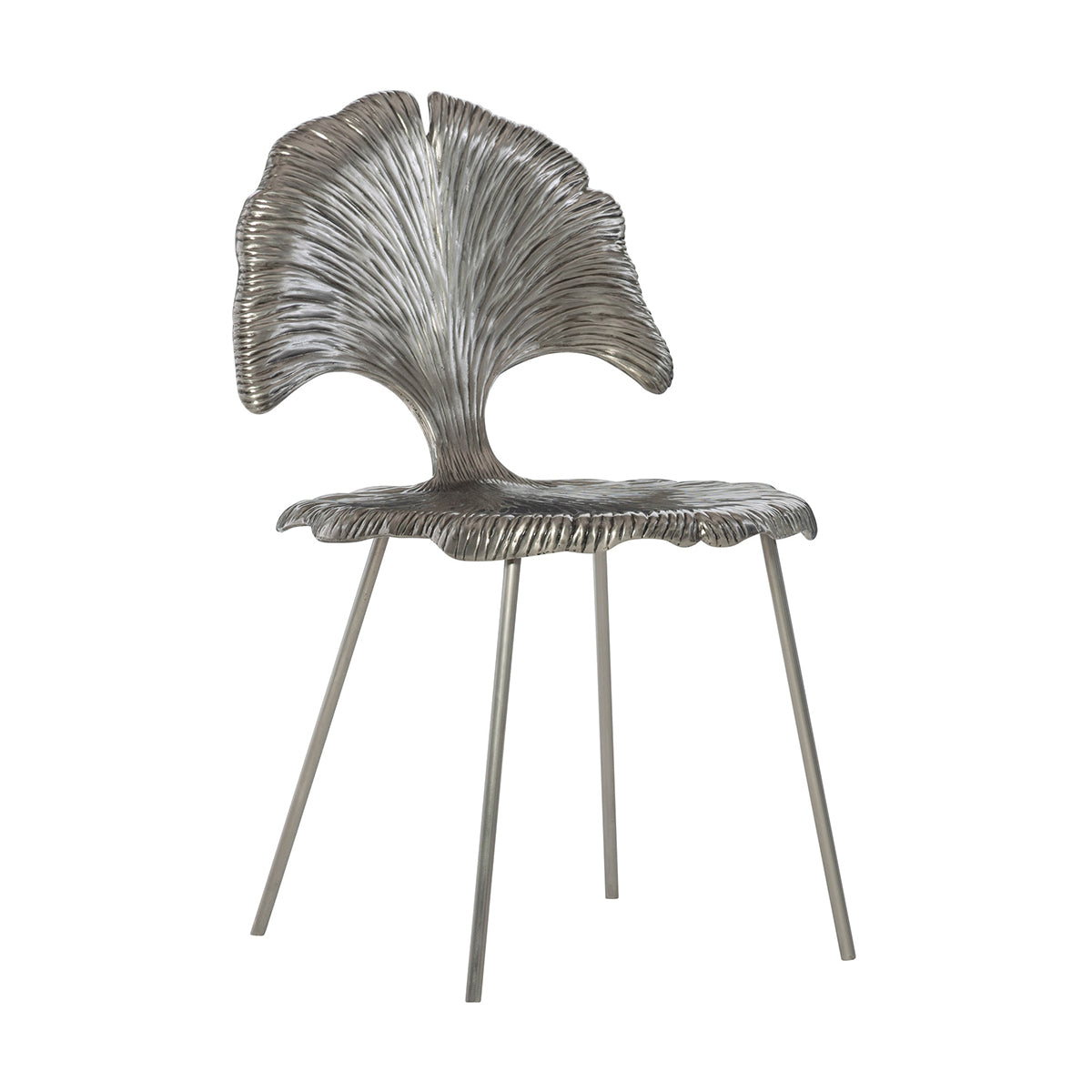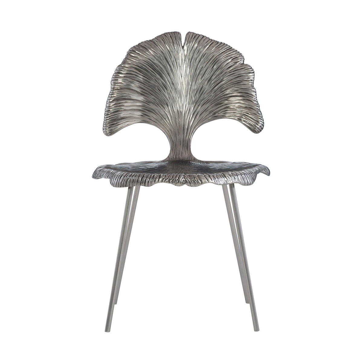 Beautifully molded like Gingko Leaf and gleaming in Shiny Nickel, Felicity Metal Chair leaves no stones unturned in enhancing your home interiors. With adjustable glides, the chair is cast out of aluminum. It is an irresistible piece crafted with fine finishing.
