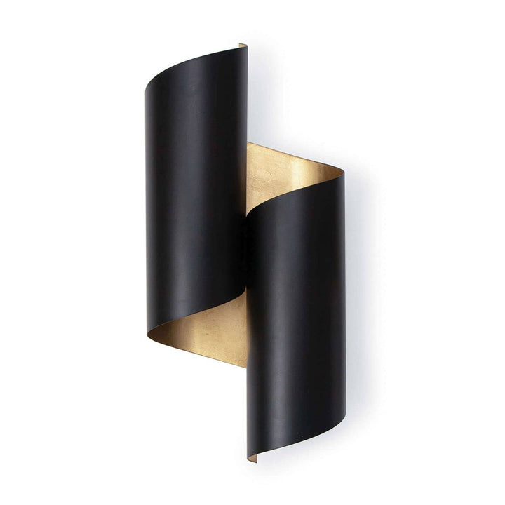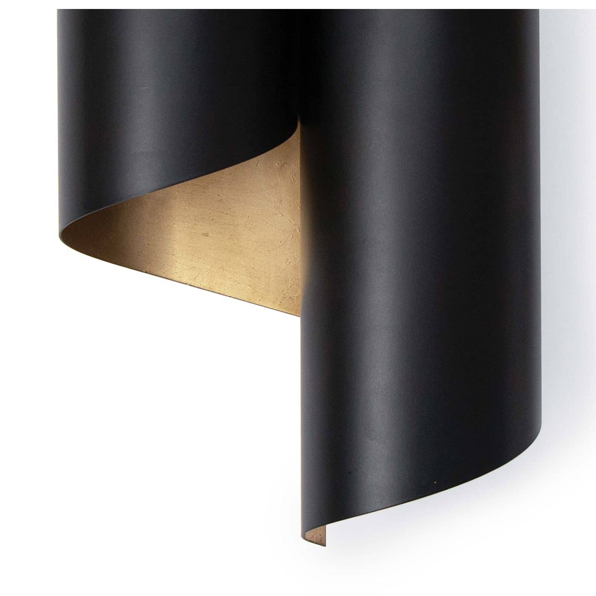 Bring a touch of classic elegance indoors with the Folio Sconce. It features a fancy, curvy Aluminum structure with a Black finish on the exterior, contrasting well with the Gold Leaf interior. When lit, this piece offers a subtle charm to the place. A perfect modern add-on!