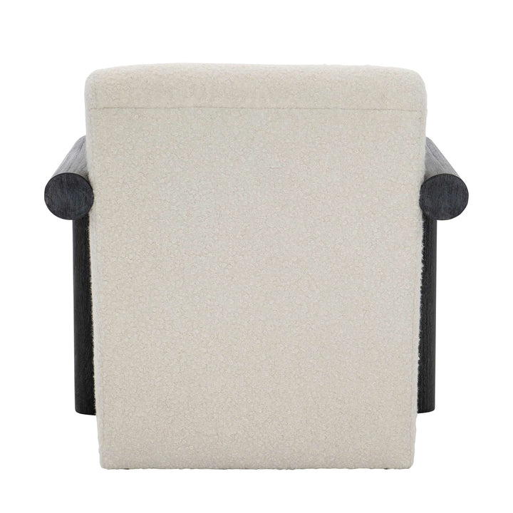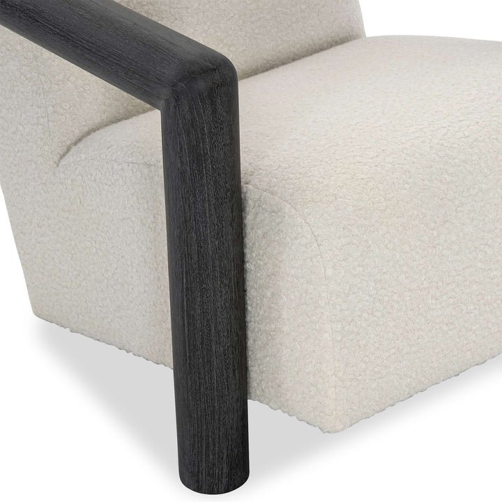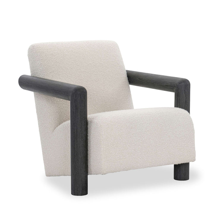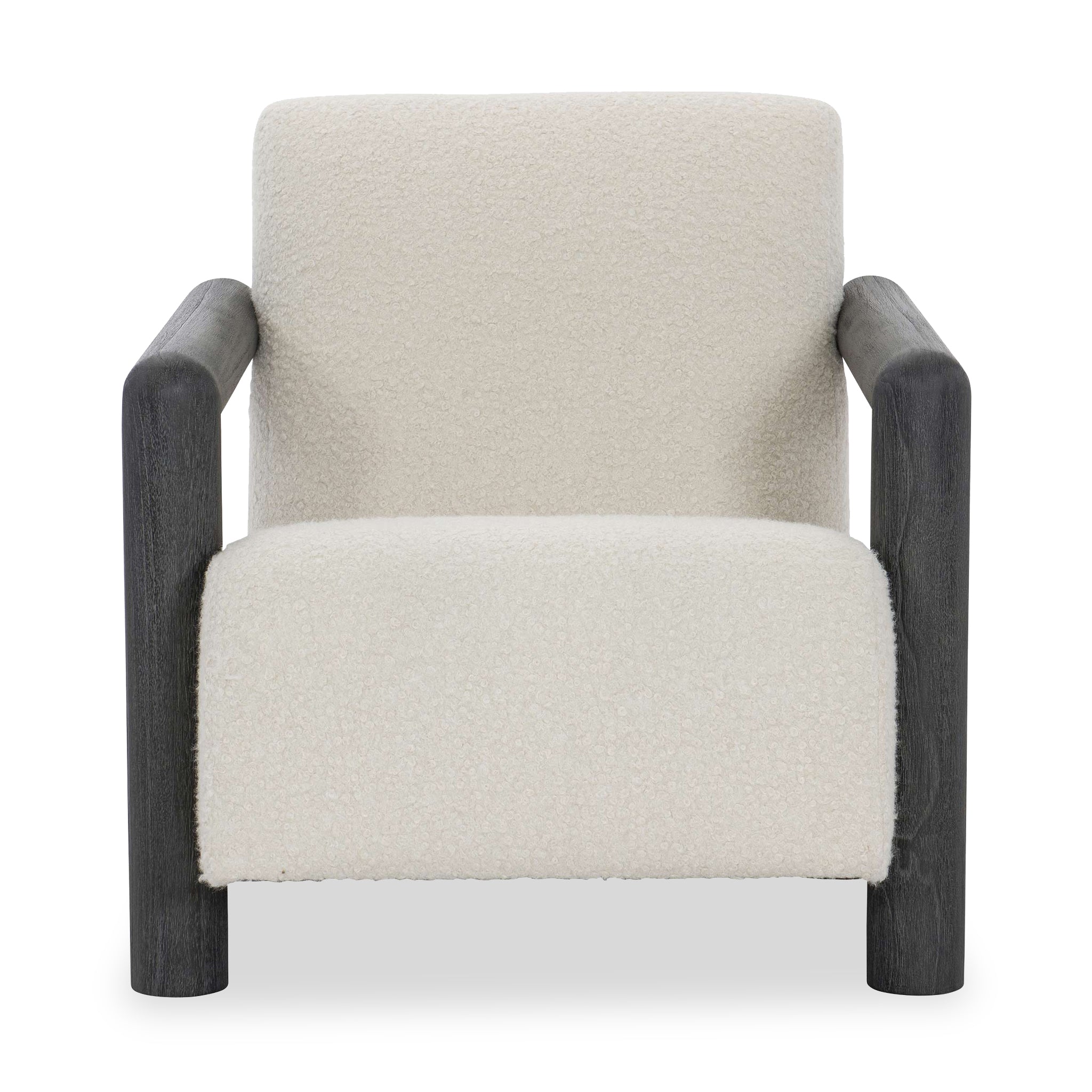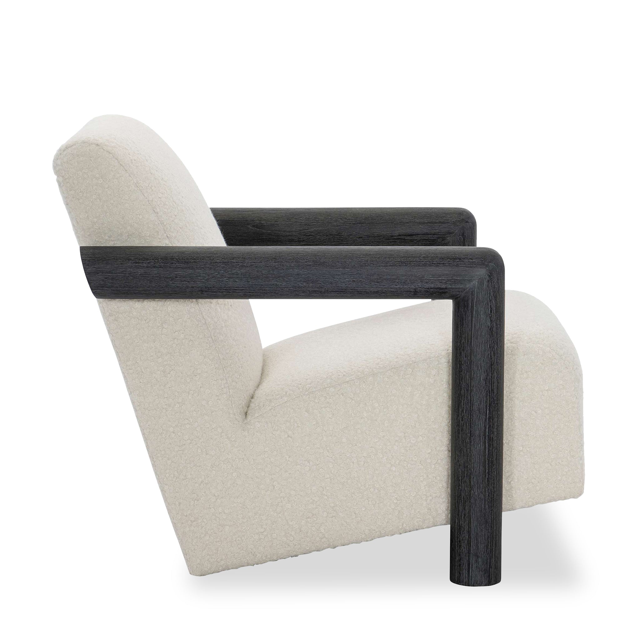 This accent chair is a reimagined cantilever version to suit the contemporary interiors. The soft yet tightly upholstered body is accented by the solid wood arms, lending a rustic touch. Use the piece in pairs or as a standalone piece to elevate the decor in a subtle yet alluring manner.