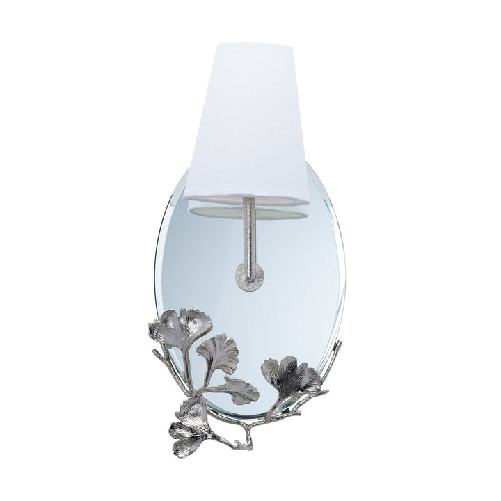 FRAMELESS GINKGO OVAL MIRROR WALL SCONCE WITH FABRIC SHADE NICKEL