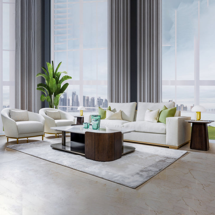 Sit with luxury—the Galapagos Sofa presents a slender composition dolled up in Taupe Chenille fabric to offer irresistible comfort. Piping detailing in a Beige color draws attention to the aesthetic. The Seike Wooden base in Natural finish ensures stability while neatly harmonizing its construction.