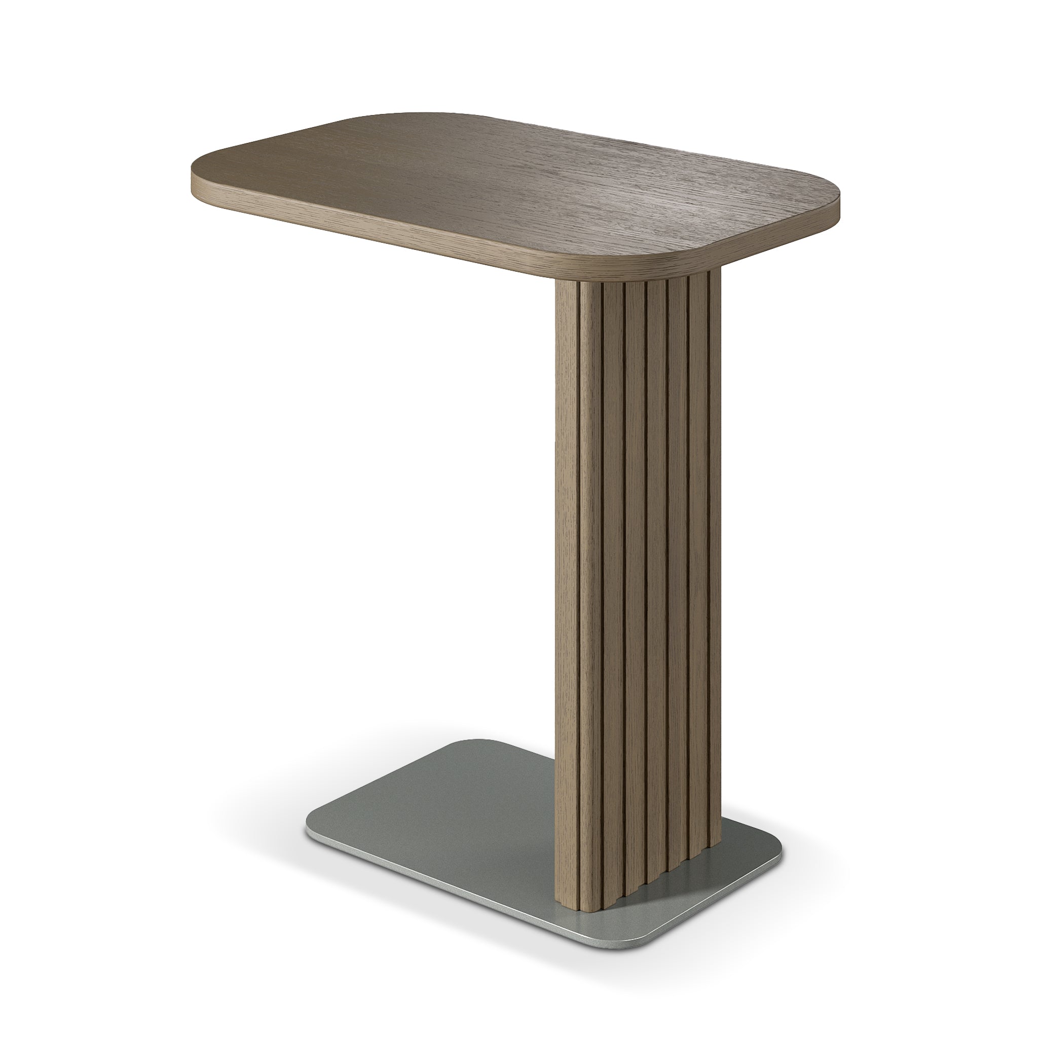 Strong at the functional front, this desirable piece of furniture has a French Oak wood top in Taupe finish. Its rounded corners remind you of the cushion cut, the main inspiration behind the collection. What's more to its aesthetics are the fluted pedestal and the Bronze metal base, giving it stability.