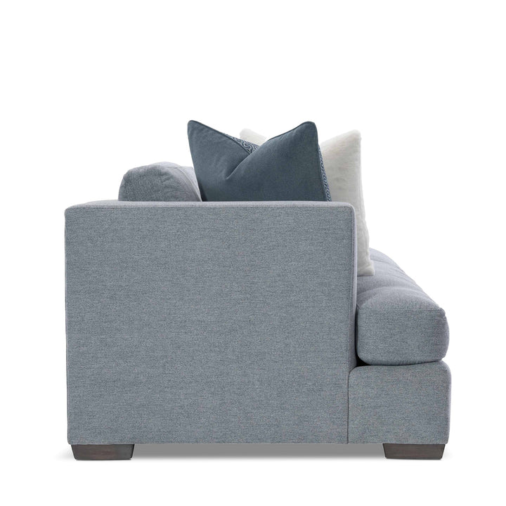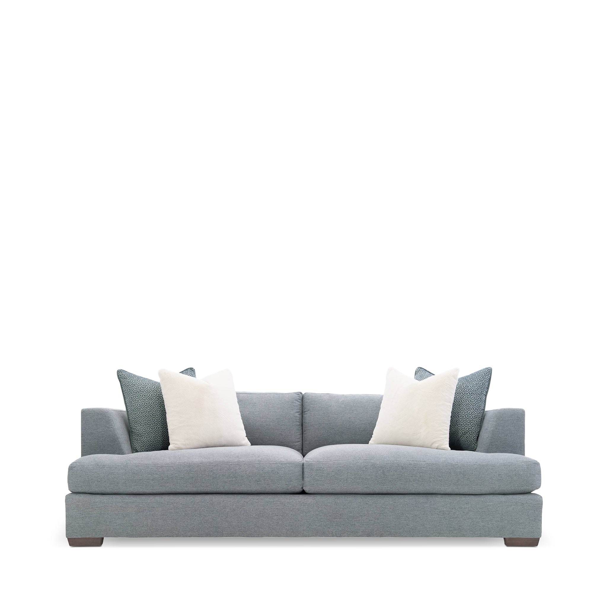 Add the Giselle Sofa to your living space and create a cozy configuration for your playful gatherings. Its fabric upholstered body with loose seat and back cushions provides the perfect spot for lounging. The wooden feet in Aged Grey finish perfectly round out the overall appearance.