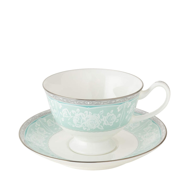 Imagine the delicate touch of Bone China against your fingertips as you cradle this cup that's been artfully fashioned to embody both grace and functionality. The floral pattern rimming the cup, in its enchanting shades of Green, dances like a whisper of nature itself, adding a touch of vibrancy to your morning ritual.