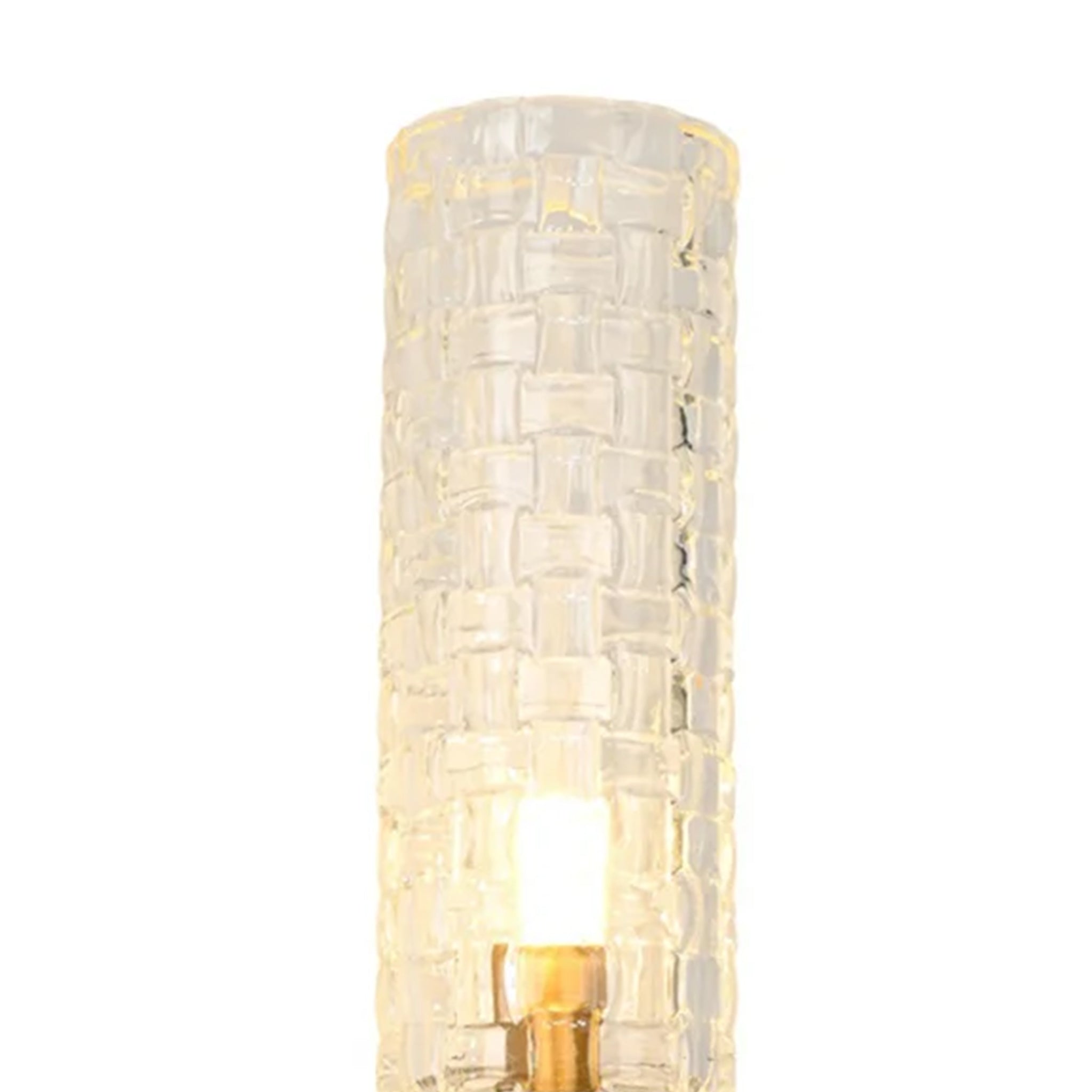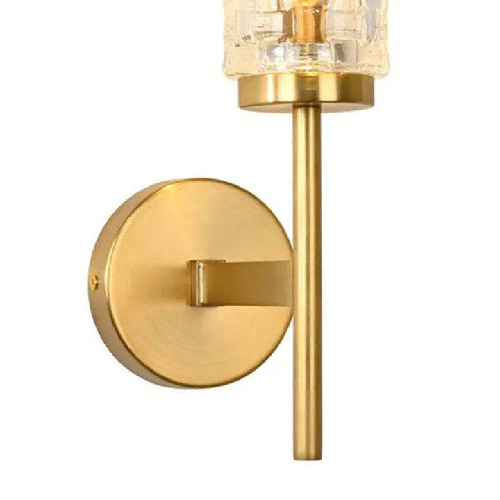 Held by a Stainless Steel frame with a circular backplate dressed in an Antique Brass finish, this wall lamp is perfect for a contemporary setting. A cylindrical clear glass shade with a seamless square pattern increases its visual interest. Brighten up your dining area or living space by hanging this piece.