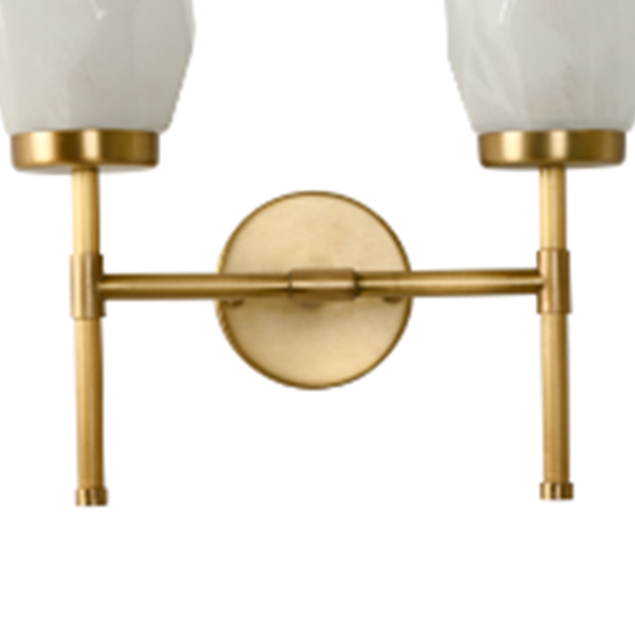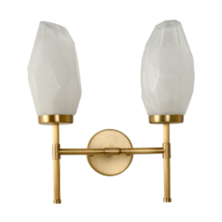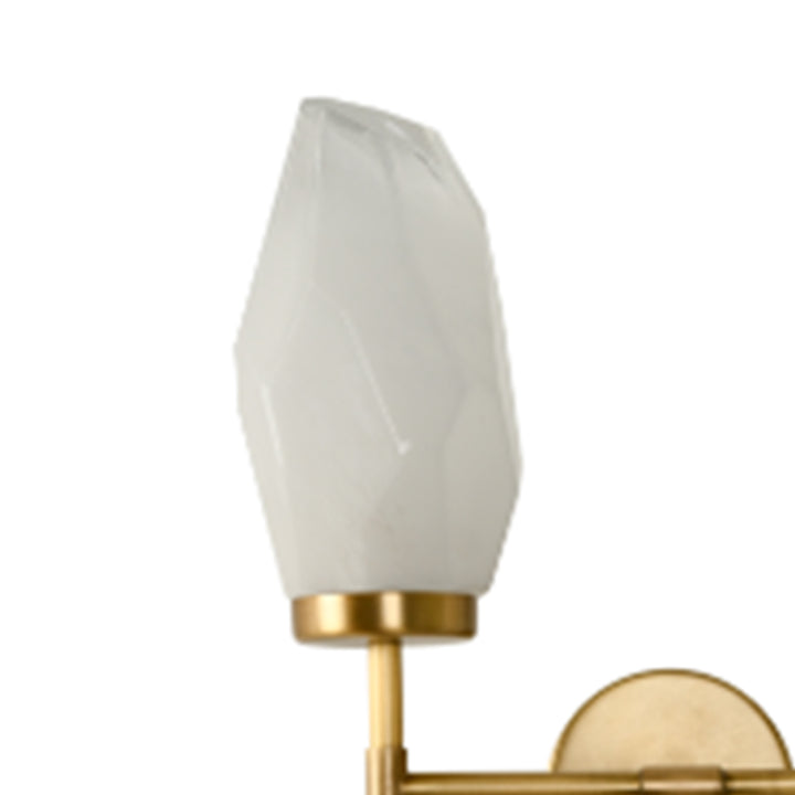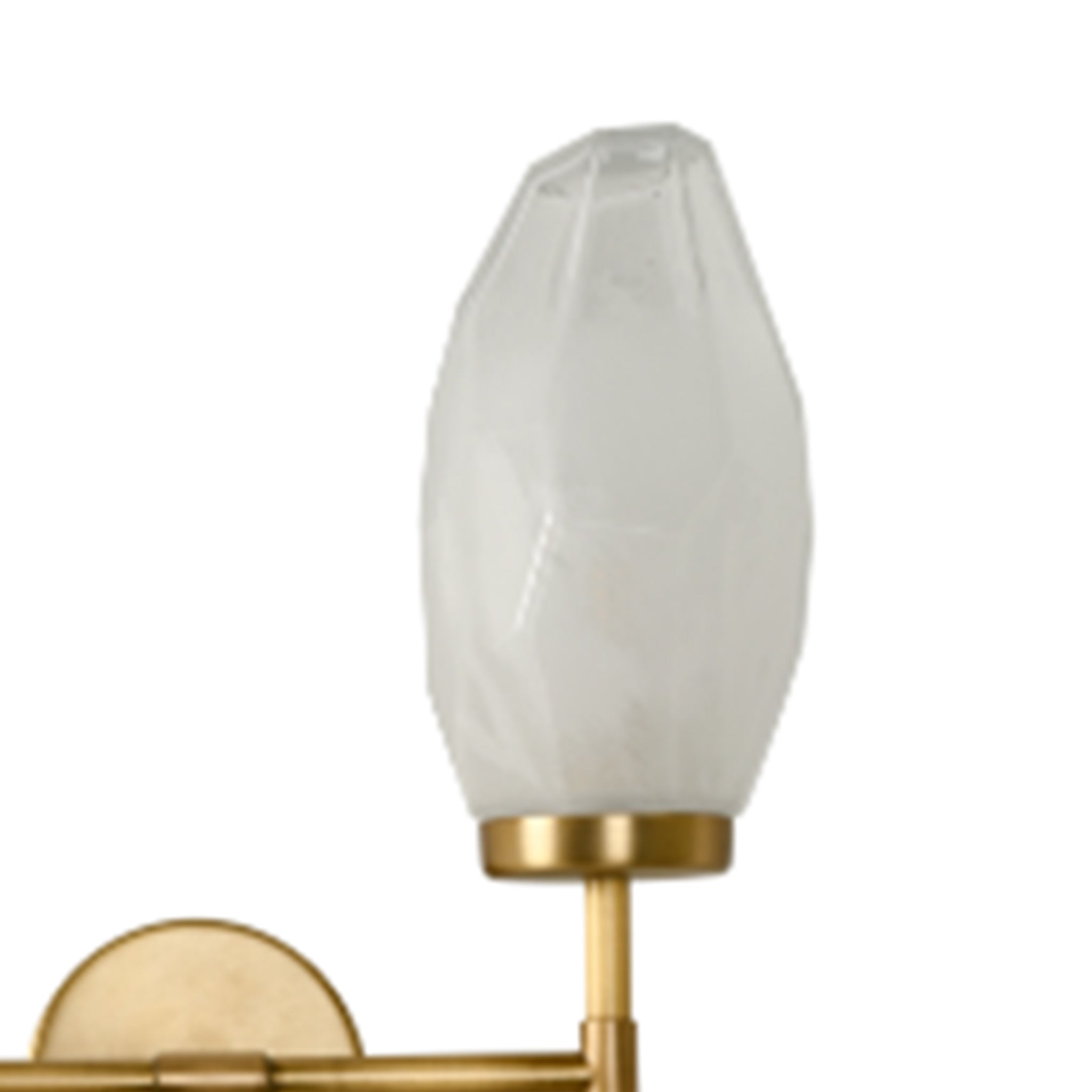 Cast cozy lighting to your space with this fancy wall lamp, parading two shapely glass shades that resemble an iceberg. It is accompanied by a slender Antique Brass-finish Steel frame to harmonize its design seamlessly.