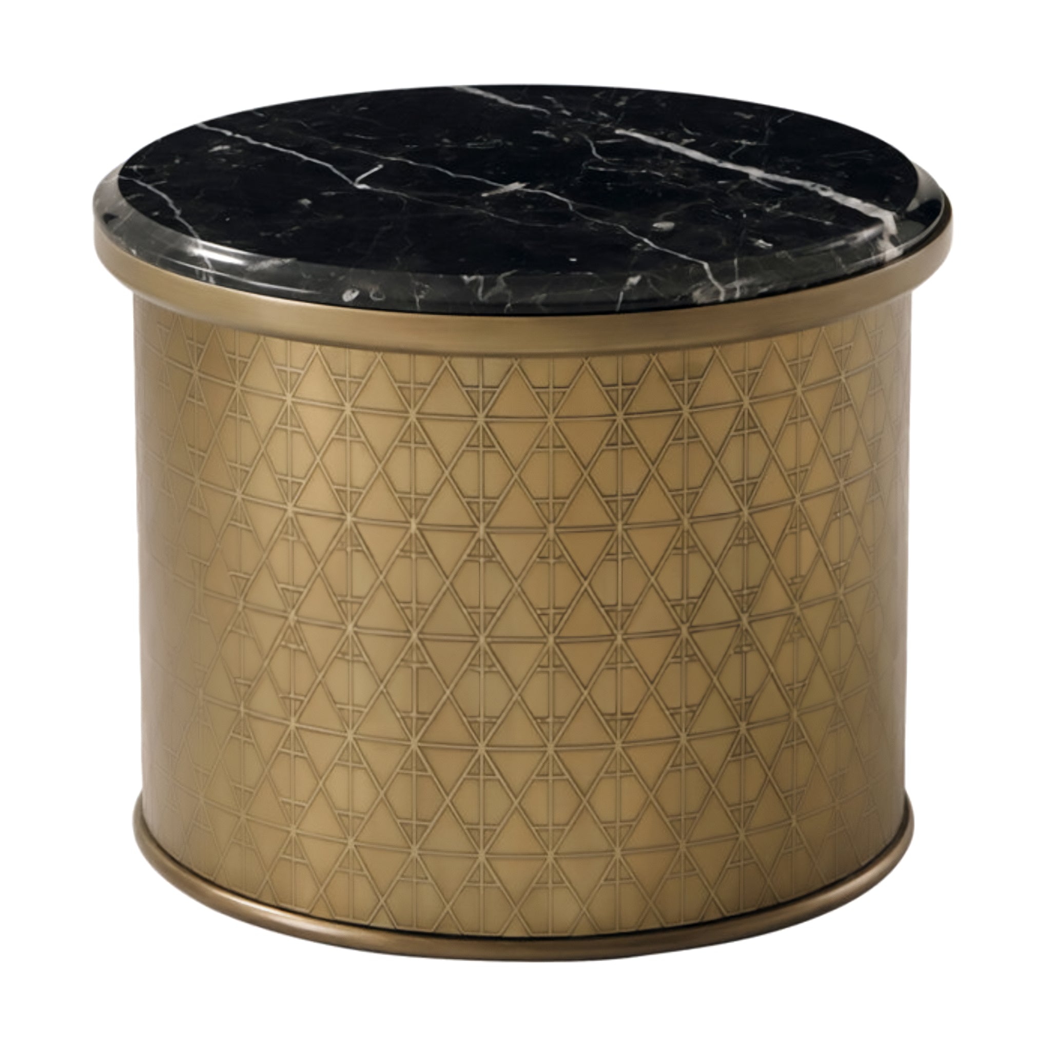 Unveil the epitome of timeless chic with our Iconic Round Side Table, where form seamlessly meets function. Its sleek and modern design features a sturdy yet graceful cylindrical frame, which creates an alluring visual contrast with the round Black Marble top. The intricate geometrical pattern design adorns the frame to make a powerful impression to your space.